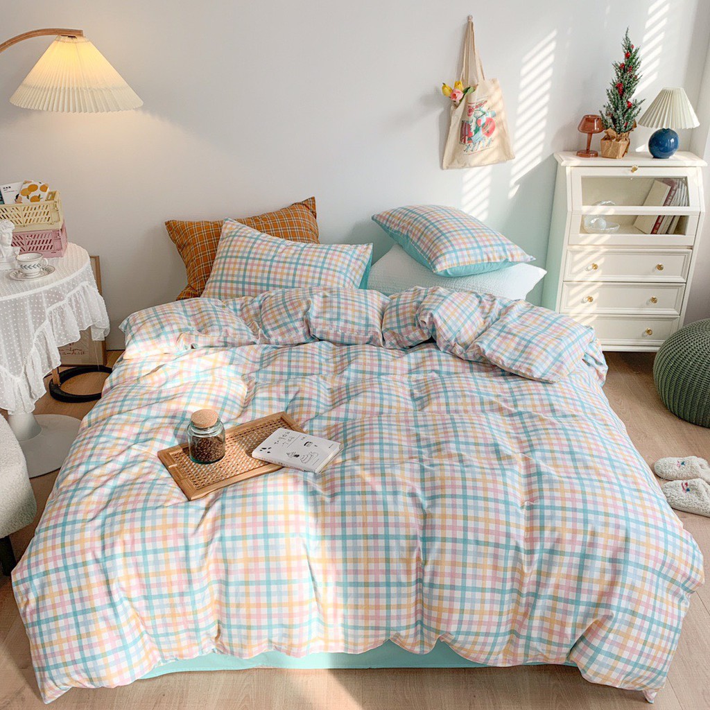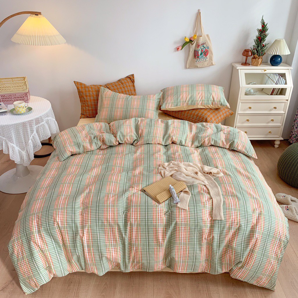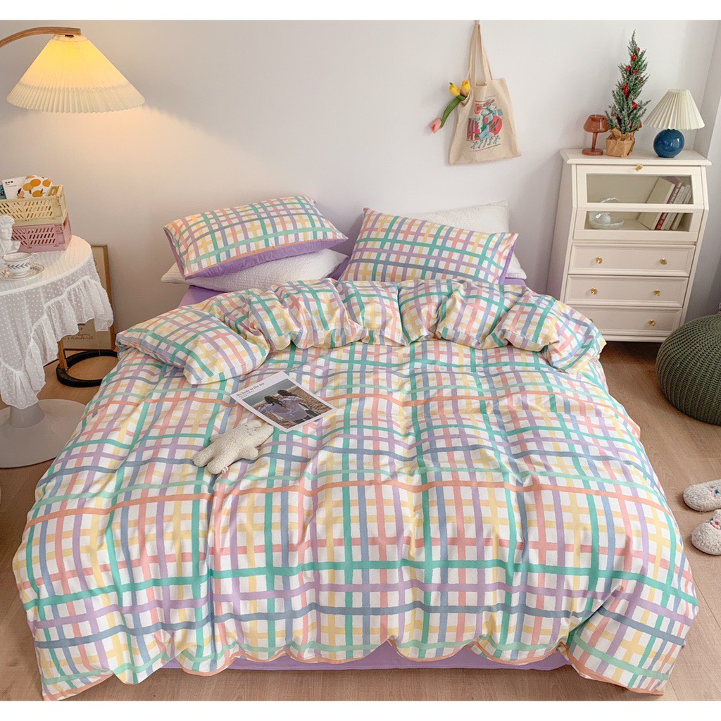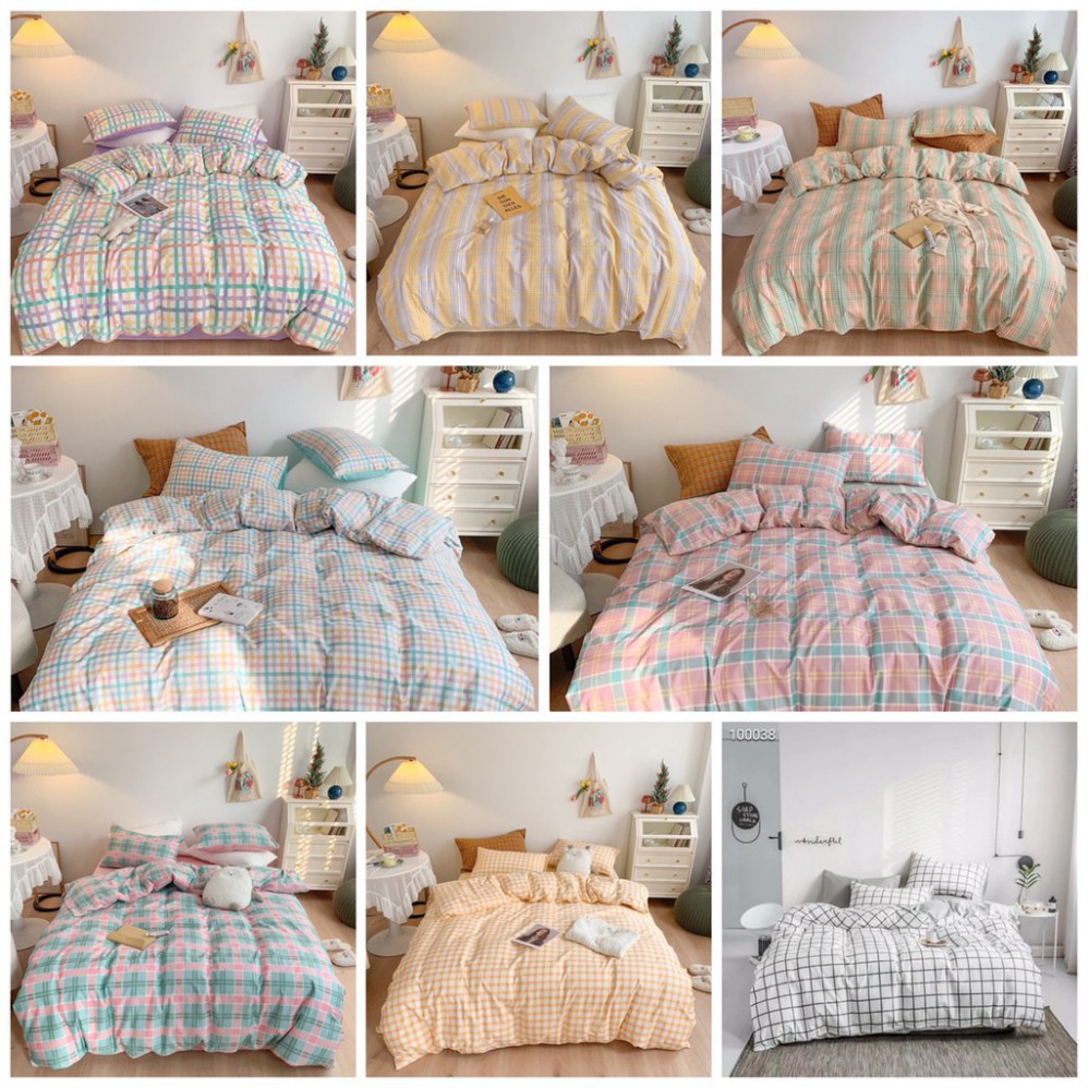 Bộ Chăn Ga Gối Cotton Living Kẻ Sắc Màu, Chọn Mẫu