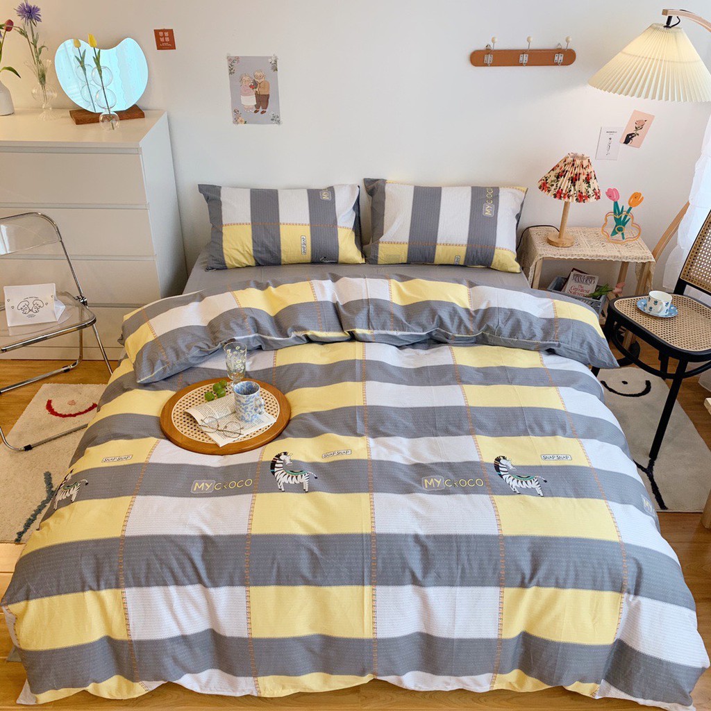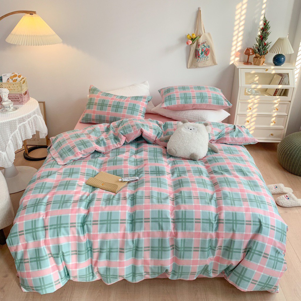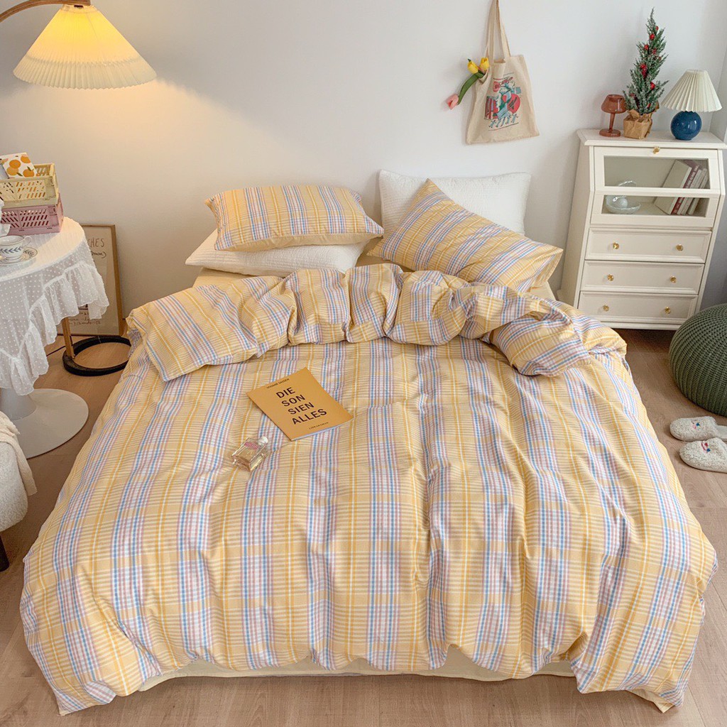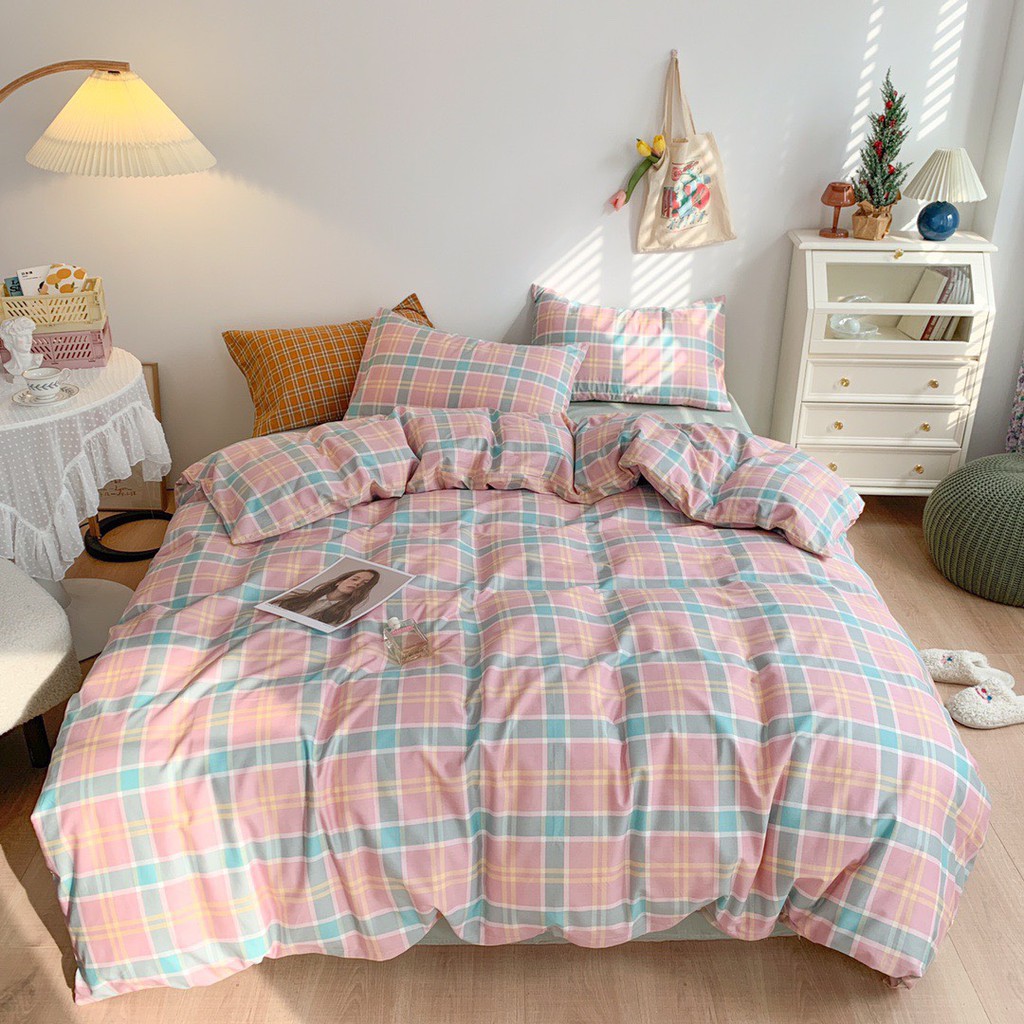 Bộ Chăn Ga Gối Cotton Living Kẻ Sắc Màu, Chọn Mẫu