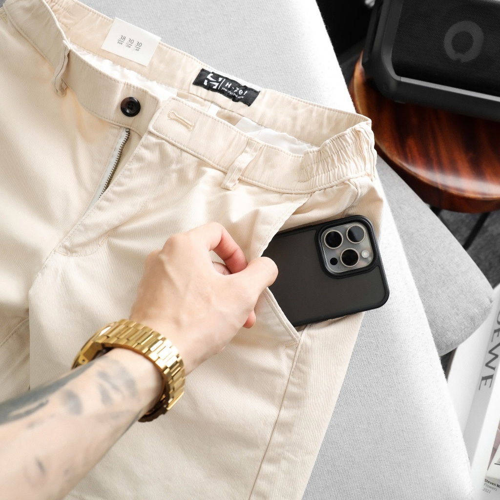 Short kaki nam slimfit H-ZET form ngắn trên gối, năng động, trẻ trung SKKN