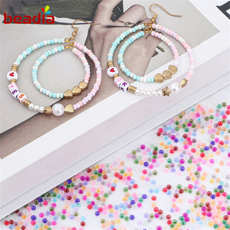 Hạt gạo BEADIA bằng thủy tinh nhiều màu dùng làm trang sức chất lượng cao DIY