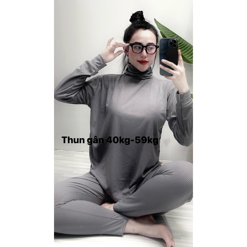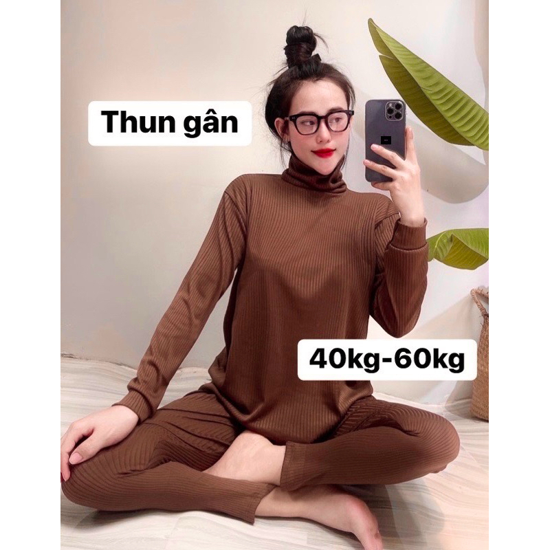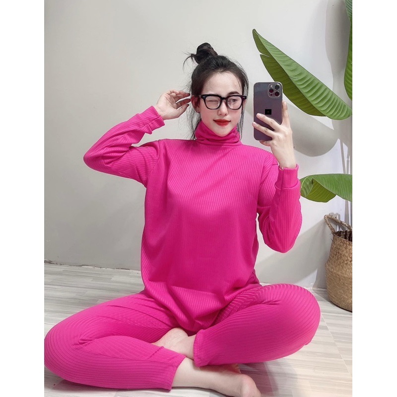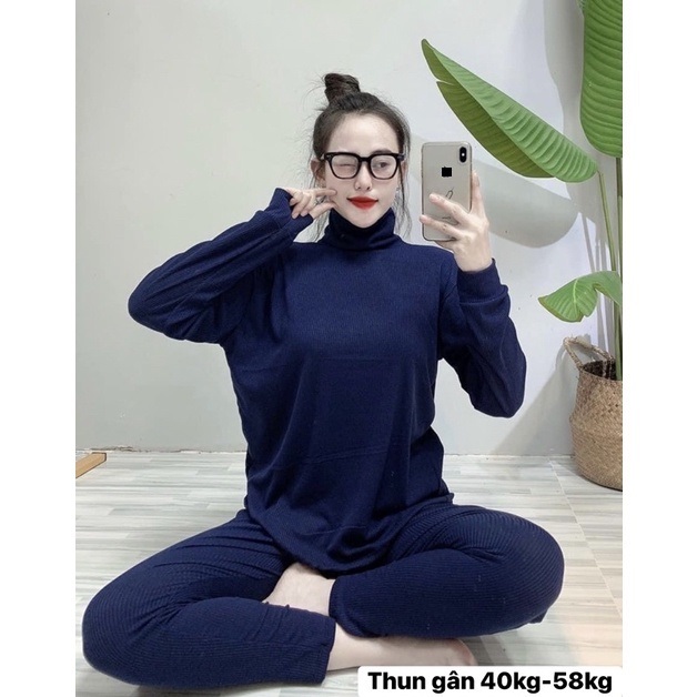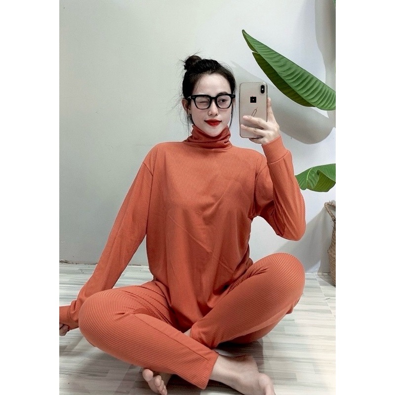 Set đồ nữ bộ Ủ KEM CỔ LỌ TAY DÀI, QUẦN DÀI Thun Gân( 40kg-60kg)