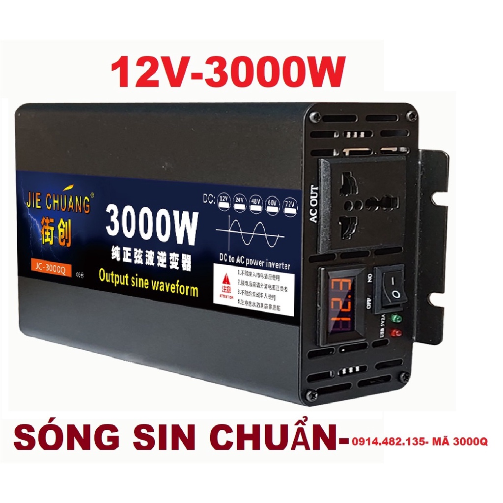 Bộ đổi nguồn inverter 12v lên 220v 3000W Sóng Sin chuẩn- Kich điện sóng sin tinh khiết 3000W