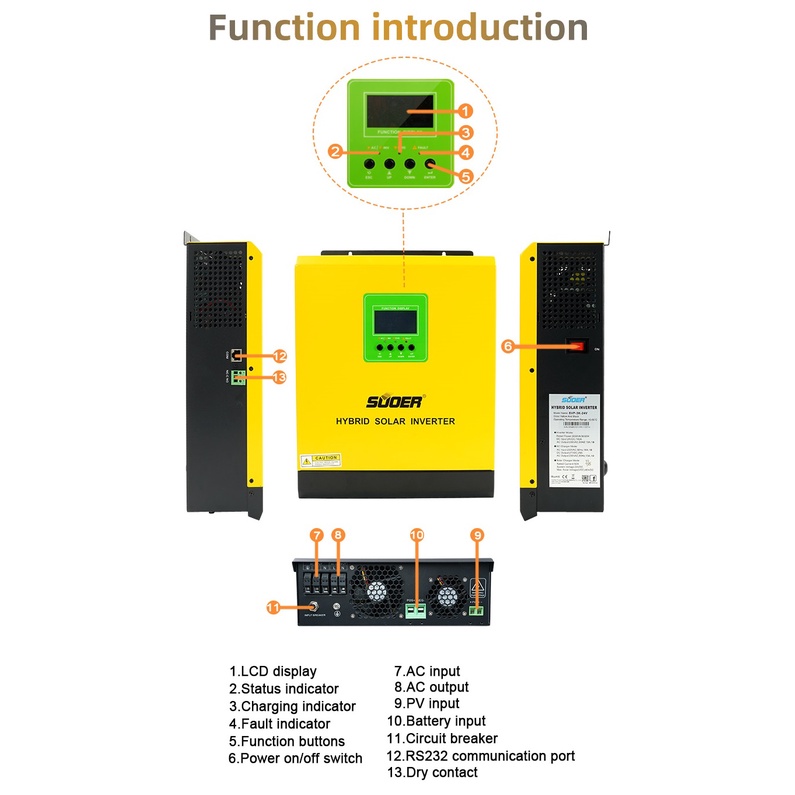 Bộ đổi điện tần số cao 3KVA 24V có sạc ắc quy 30A và sạc PWM 50A - PS-3K-24