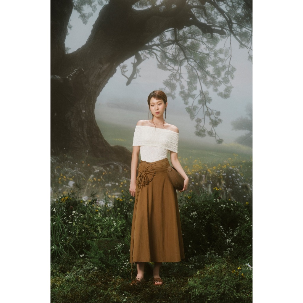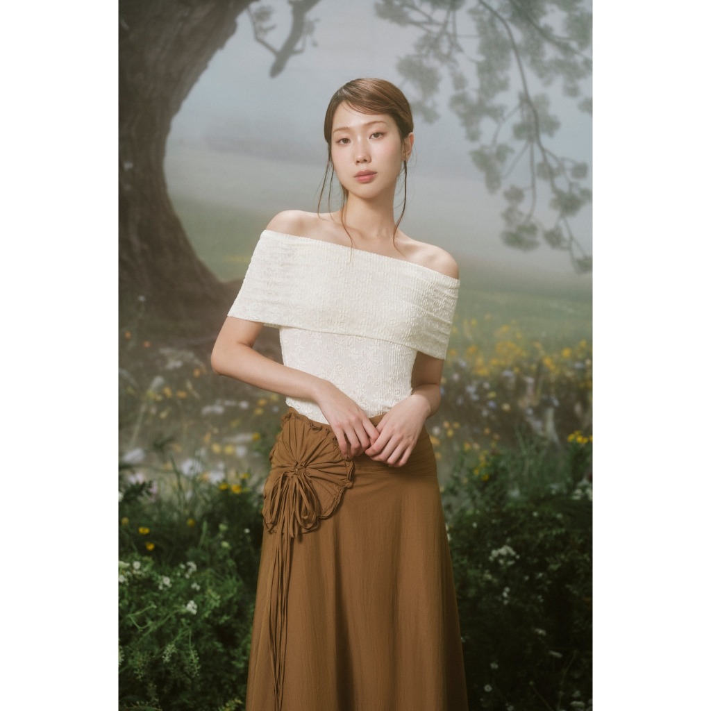 Áo trễ vai dáng ôm thanh lịch Ivory Ribbed Off Shoulder Fleur Top phù hợp đi chơi đi tiệc OLV