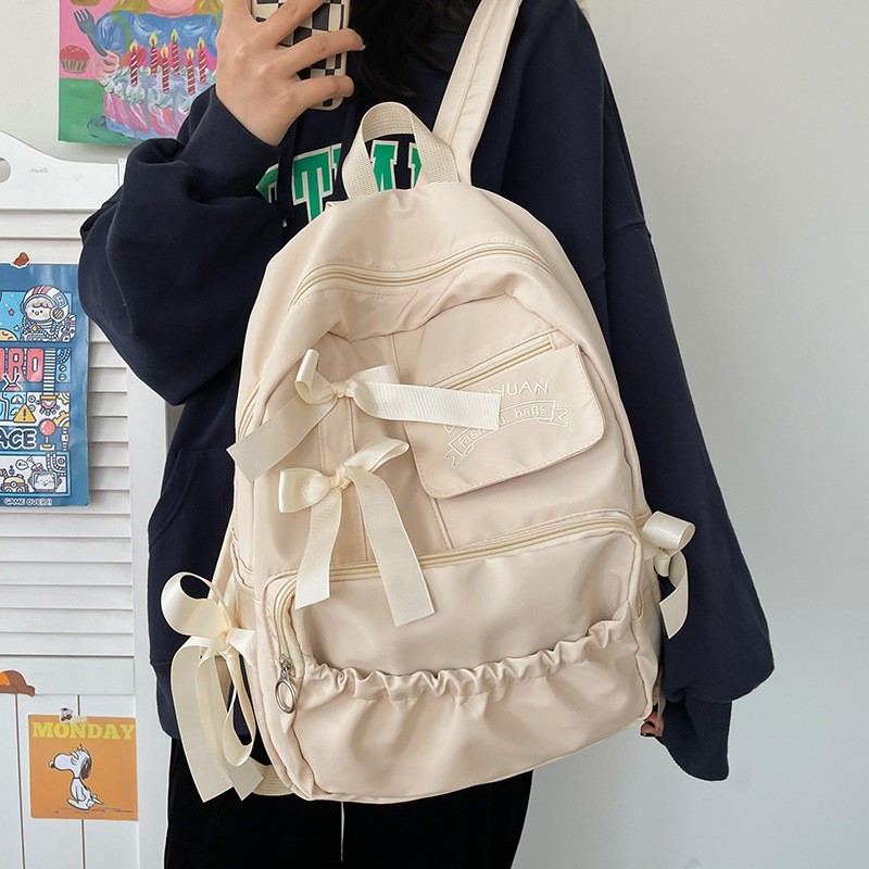 Balo Lolita Dễ Thương Kiểu Nhật - Tặng Kèm Nơ, Chứa Vừa Laptop 15.6 Inch Cho Học Sinh Cấp 2, Cấp 3