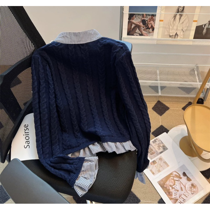 Áo len xanh than phối sơ mi cổ ngọc QCCC AN TÂY STORE.68