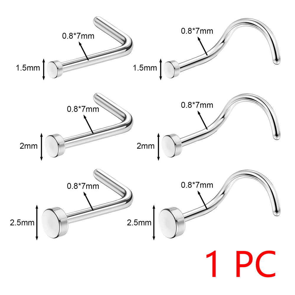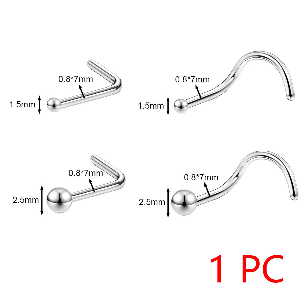 Mũi Xuyên Nostril Stud Inox 20G, Kích thước 6/7mm, Đầu Bóng 1.5/2/2.5mm - Bạc & Vàng