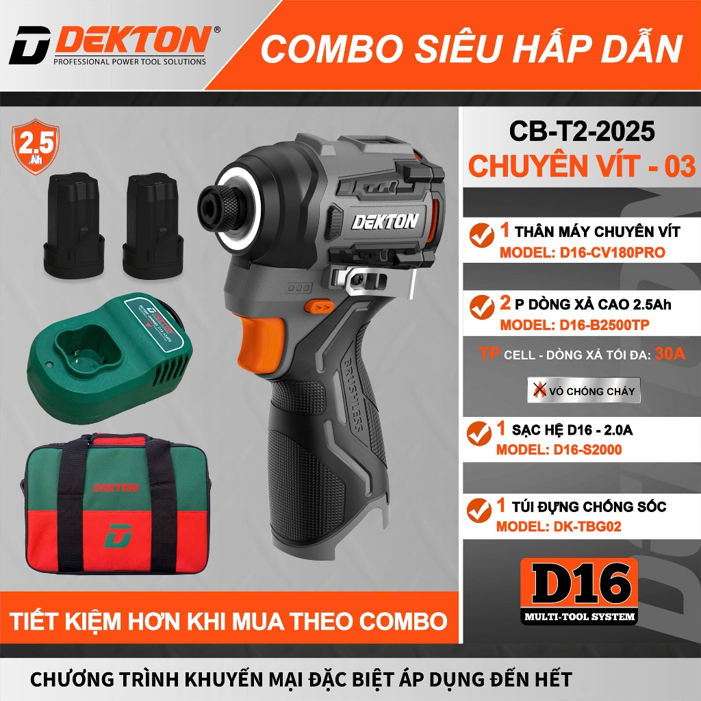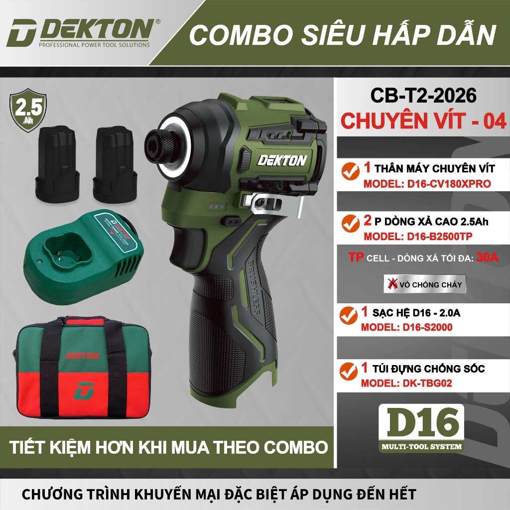 Combo Máy Vặn Vít 16V Dekton D16-CV180PRO