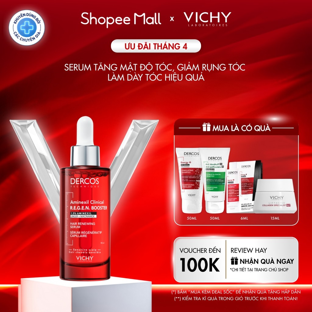 Serum Vichy Dercos tăng mật độ tóc, giảm rụng tóc, làm dày tóc hiệu quả 90ml - Dành cho tóc mỏng, thưa, yếu