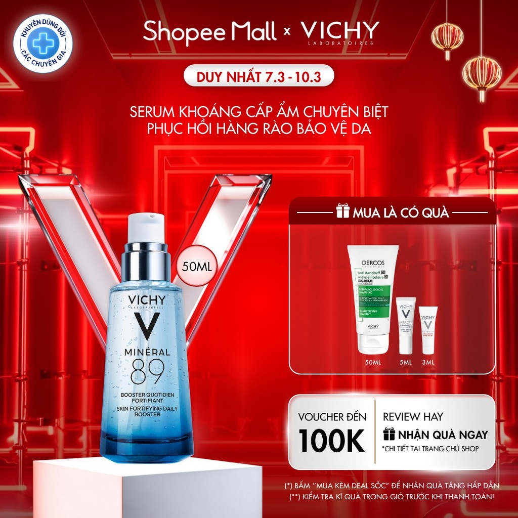 Serum khoáng “quốc dân” giúp phục hồi và cấp ẩm chuyên biệt Vichy Mineral 89 50ml, chống đa tác nhân làm suy yếu da