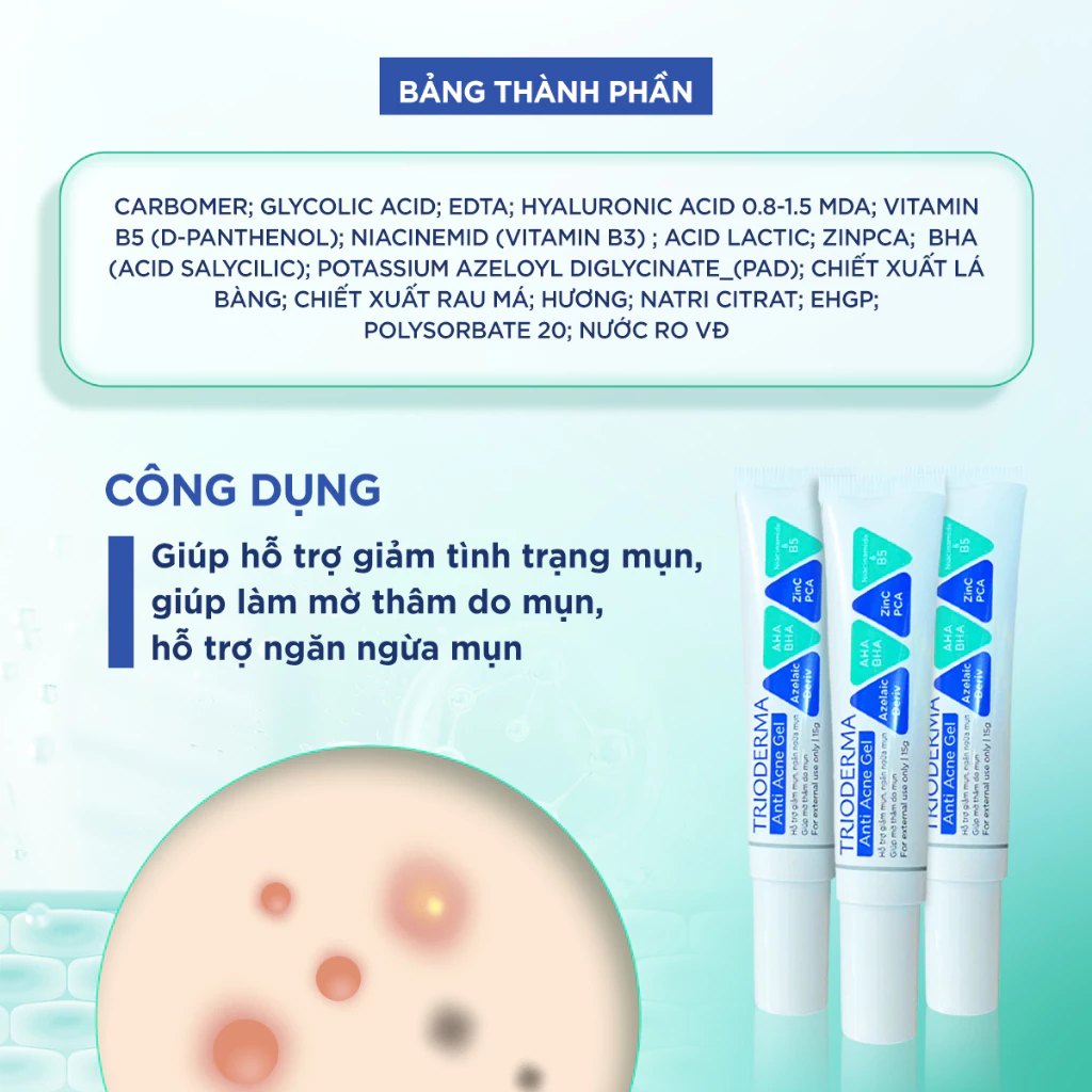 Kem chấm mụn Trioderma Anti Acne giảm sưng viêm, ngừa thâm mụn tuýp 15g