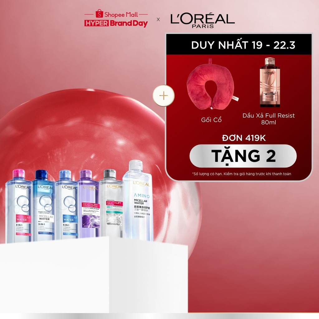 [AMINO MICELLAR MỚI] Nước tẩy trang làm sạch sâu, loại bỏ bụi bẩn & trang điểm 3-in-1 L'Oreal Paris Micellar Water 400ml