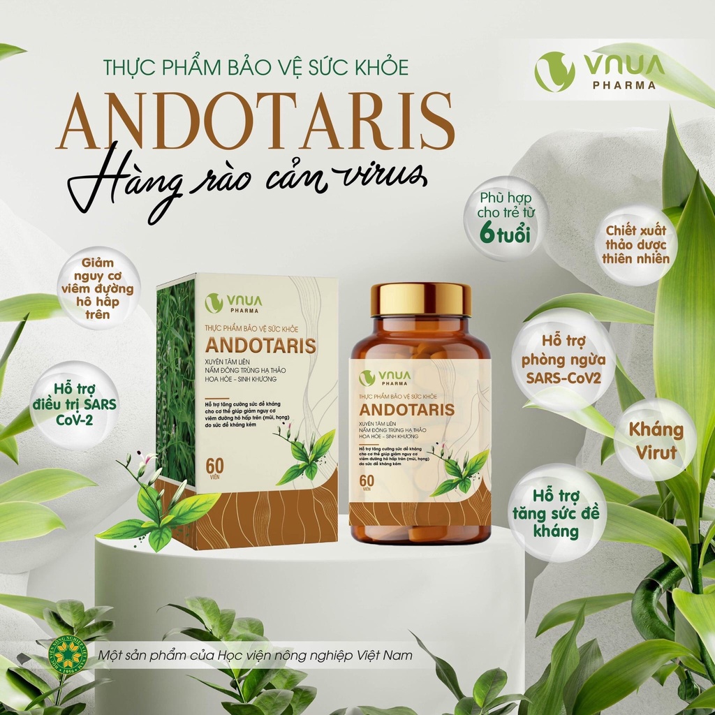 Viên Uống Tăng Đề Kháng ANDOTARIS, Tăng Cường Sức Đề Kháng Cho Cơ Thể, Giảm Nguy Cơ Viêm Đường Hô Hấp - Hộp 60 Viên