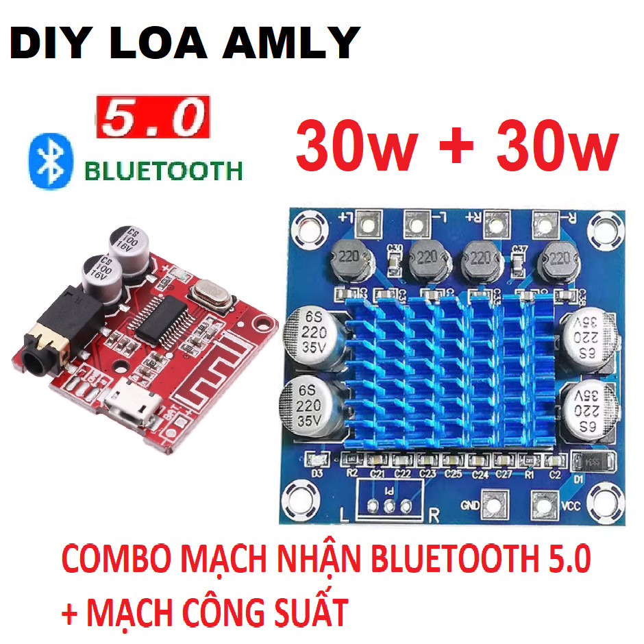 Mạch loa 30w + 30w và Mạch nhận tín hiệu Bluetooth 5.0 Mạch khuếch đại 2 kênh class D XH-A232 chế loa kéo Amly xách tay