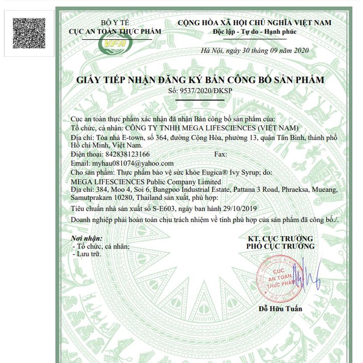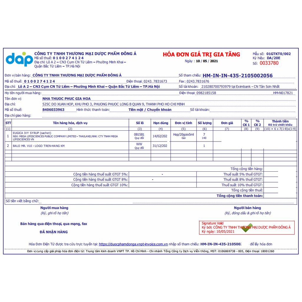 Siro cao lá thường xuân giảm ho, long đờm Eugica Ivy Syrup (Mega We Care)