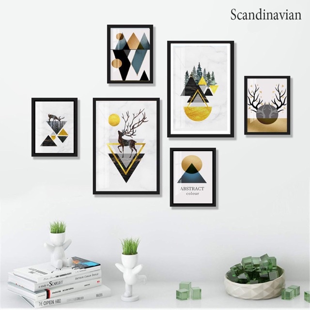 Bộ tranh 6 tấm decor hiện đại dán tường SIZE LỚN, chống nước, bền màu 10 năm không phai, tặng kèm keo 2 mặt