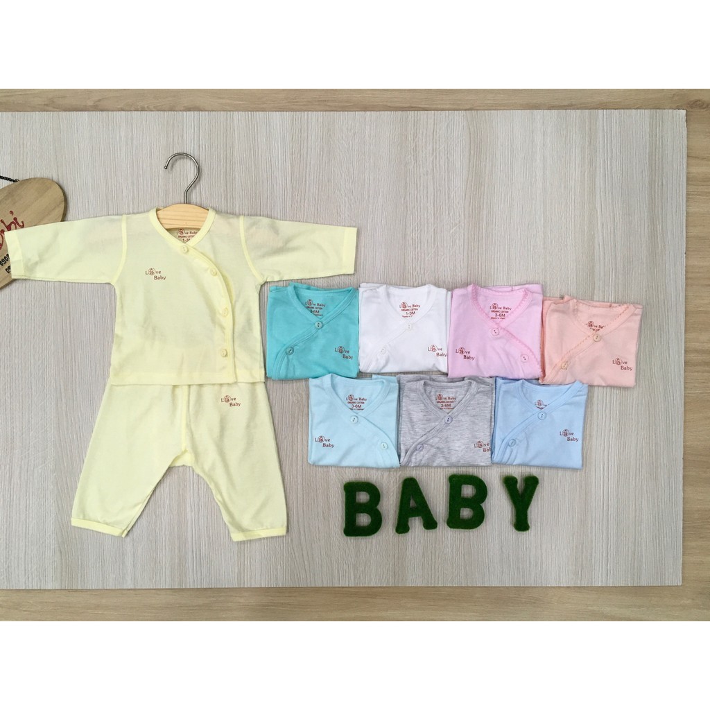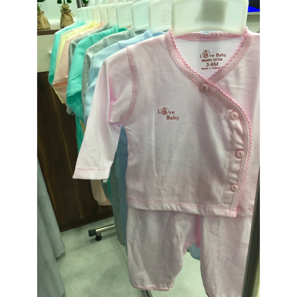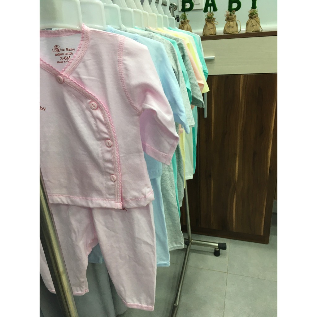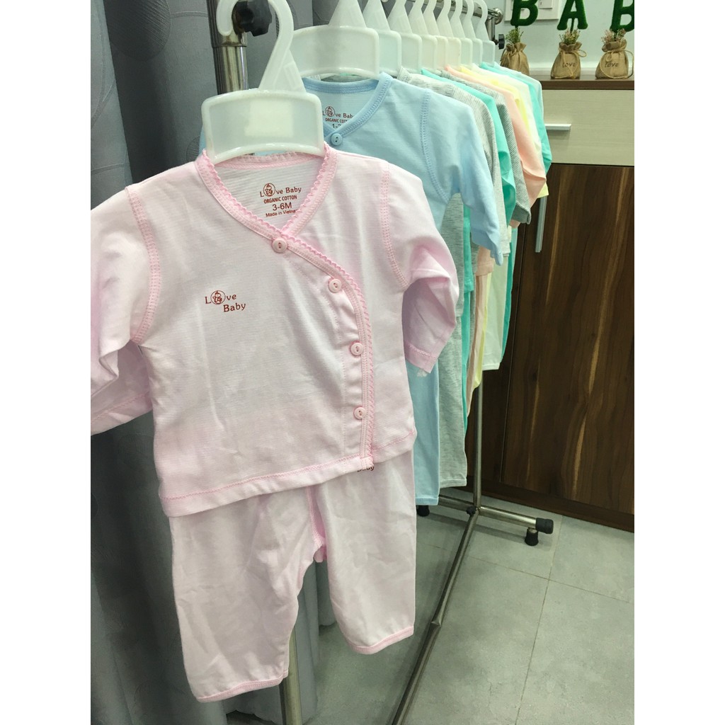 Bộ sơ sinh tay dài quần dài cài xéo, organic cotton - Chính hãng Lovebaby