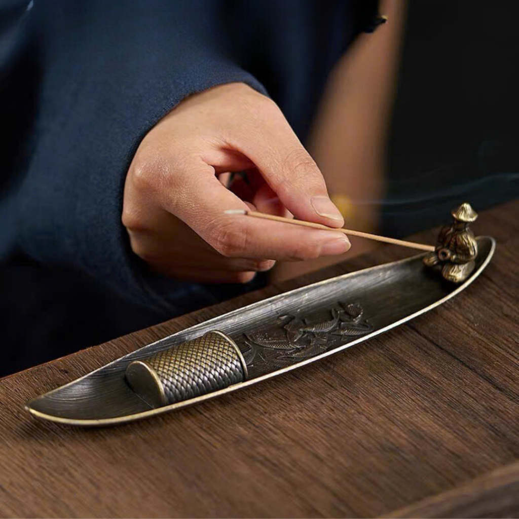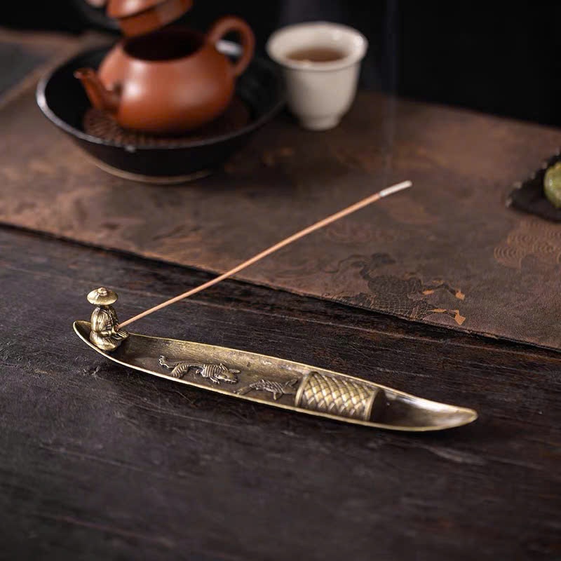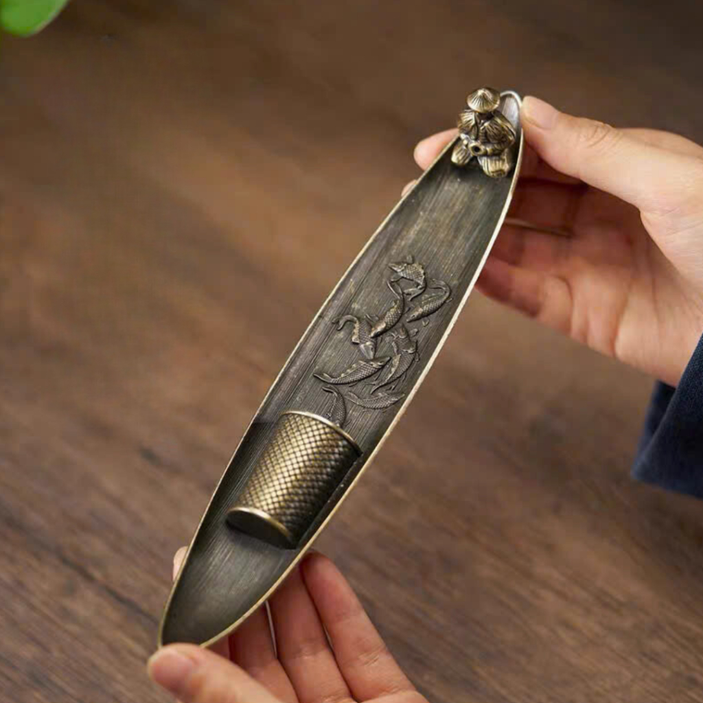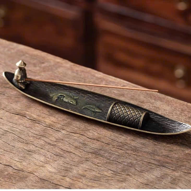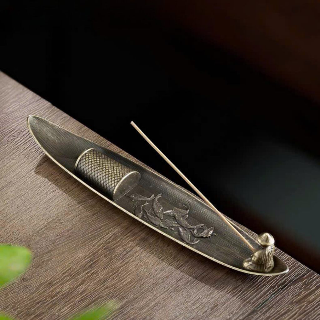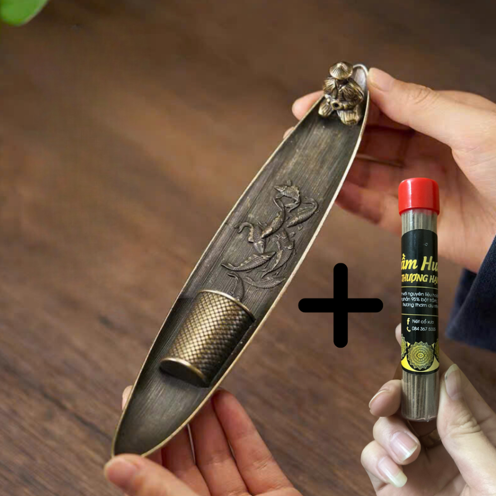 Đế Xông Trầm Hương Ngư Ông Đắc Lợi bằng Đồng Decor Phòng Trang Trí Nhà
