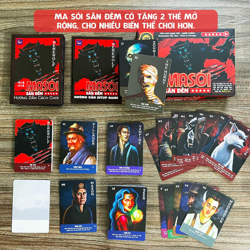 Đồ Chơi Board Game - Bộ Bài Ma Sói Săn Đêm Foxi-Werewoft-80 Lá Tăng Thêm 2 Lá Mở Rộng