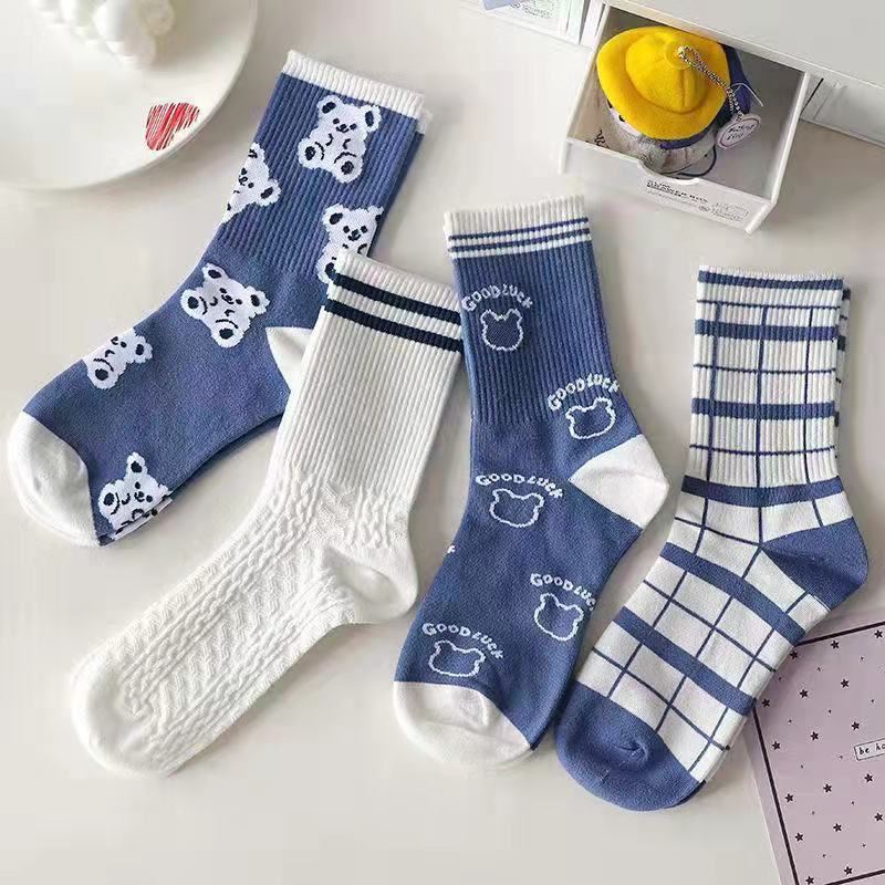 Tất cổ cao in họa tiết phong cách thể thao dành cho nữ