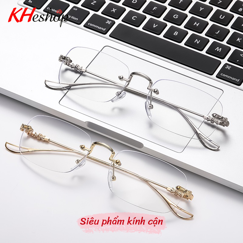 Kính cận thị không viền 2 màu bạc và vàng ánh kim, form to vừa đủ độ cận mã Y5208