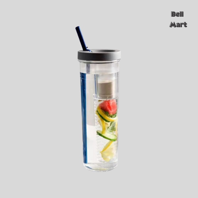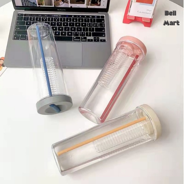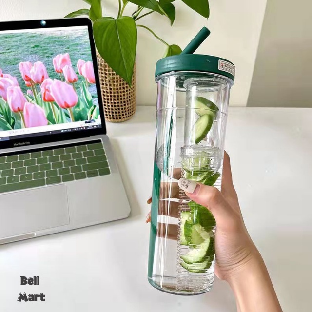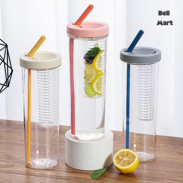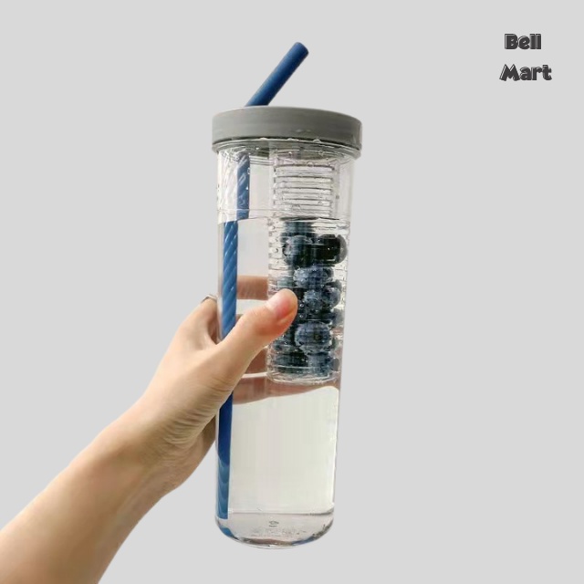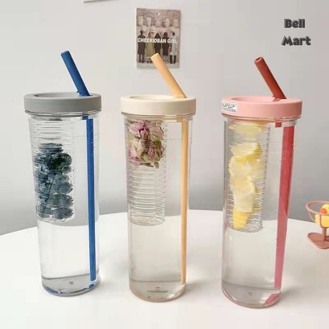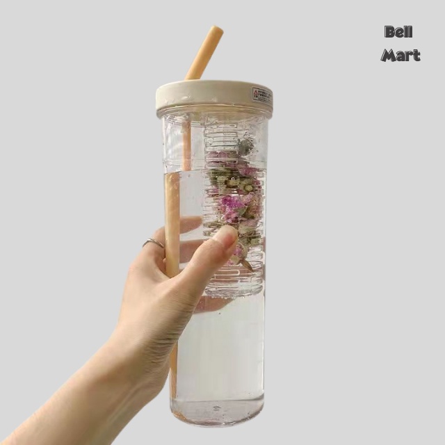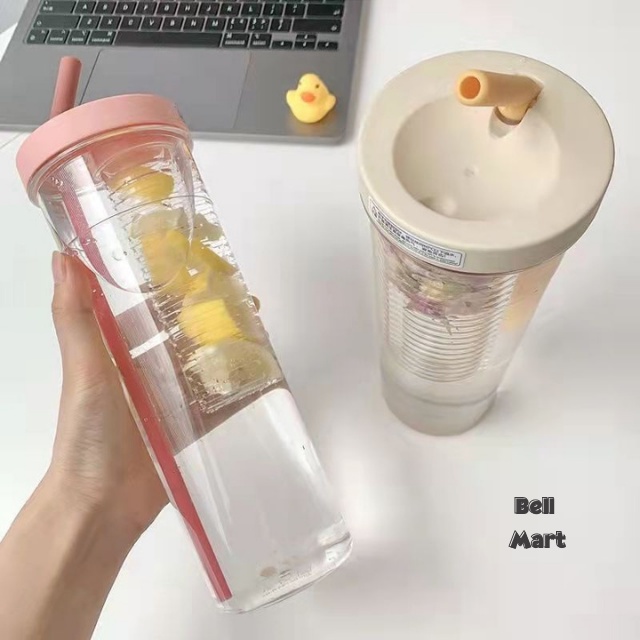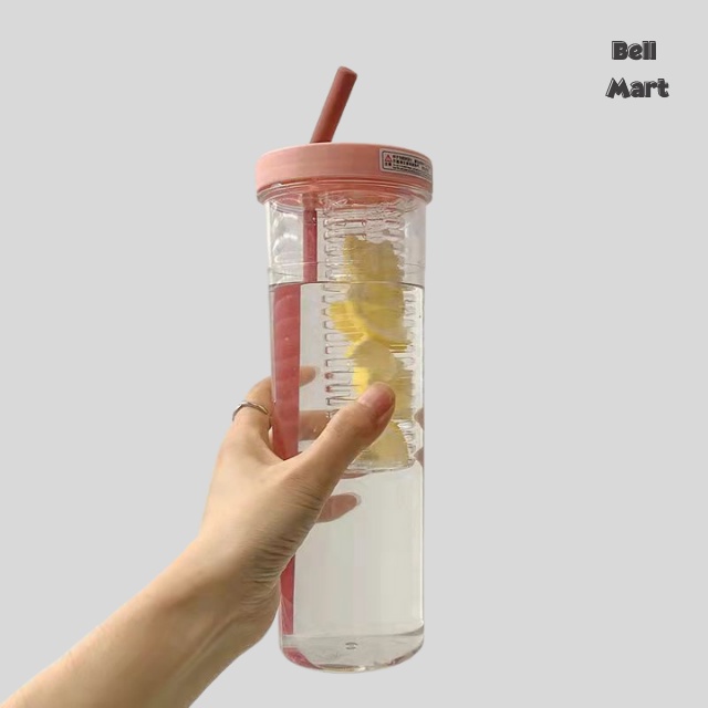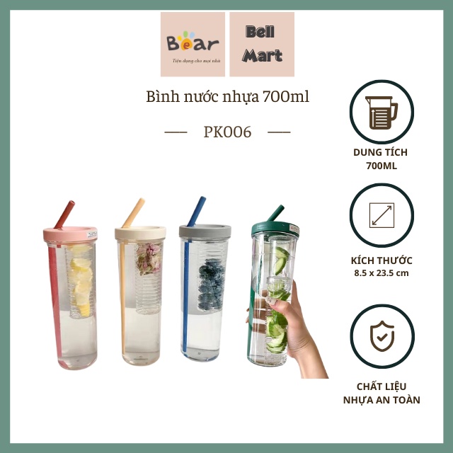 Bình Đựng Nước Nhựa 700Ml Dễ Thương - Bình Nước Nhựa Trong Suốt Kèm Ống Hút Cute Tiện Dụng - Bell Mart - PK006