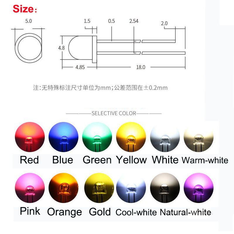 Bộ 50 đi ốt đèn LED 0.3W 0.5W 0.75W F5 0.5W 5mm tiện lợi