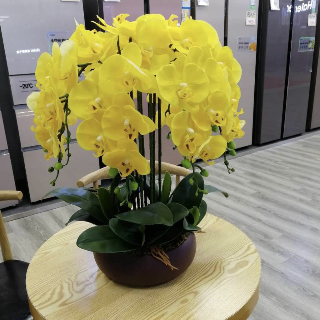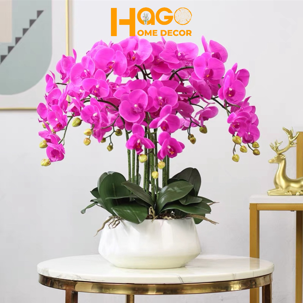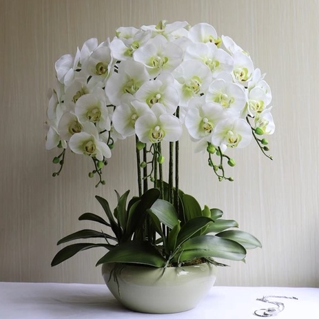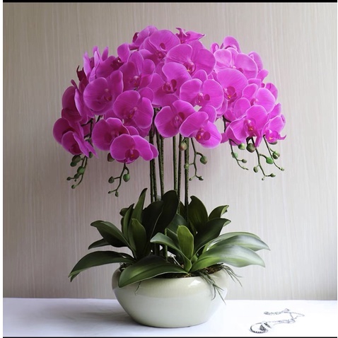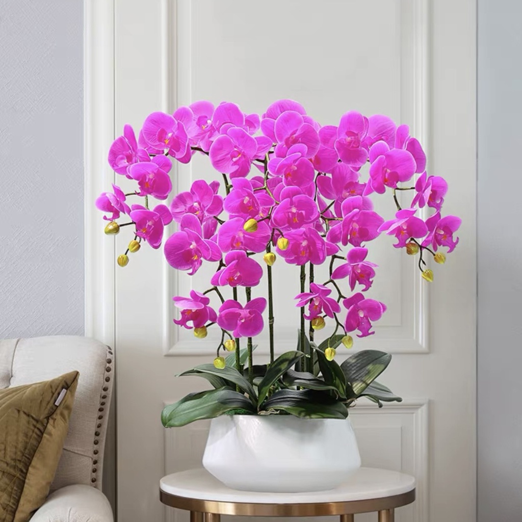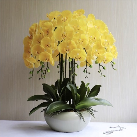 Chậu Lan Hồ Điệp Giả 5 đến 10 Nhánh Cắm Sẵn Cao 60cm Trang Trí Nhà Cửa,Công Ty, Nhà Hàng, Khách Sạn Sang Trọng