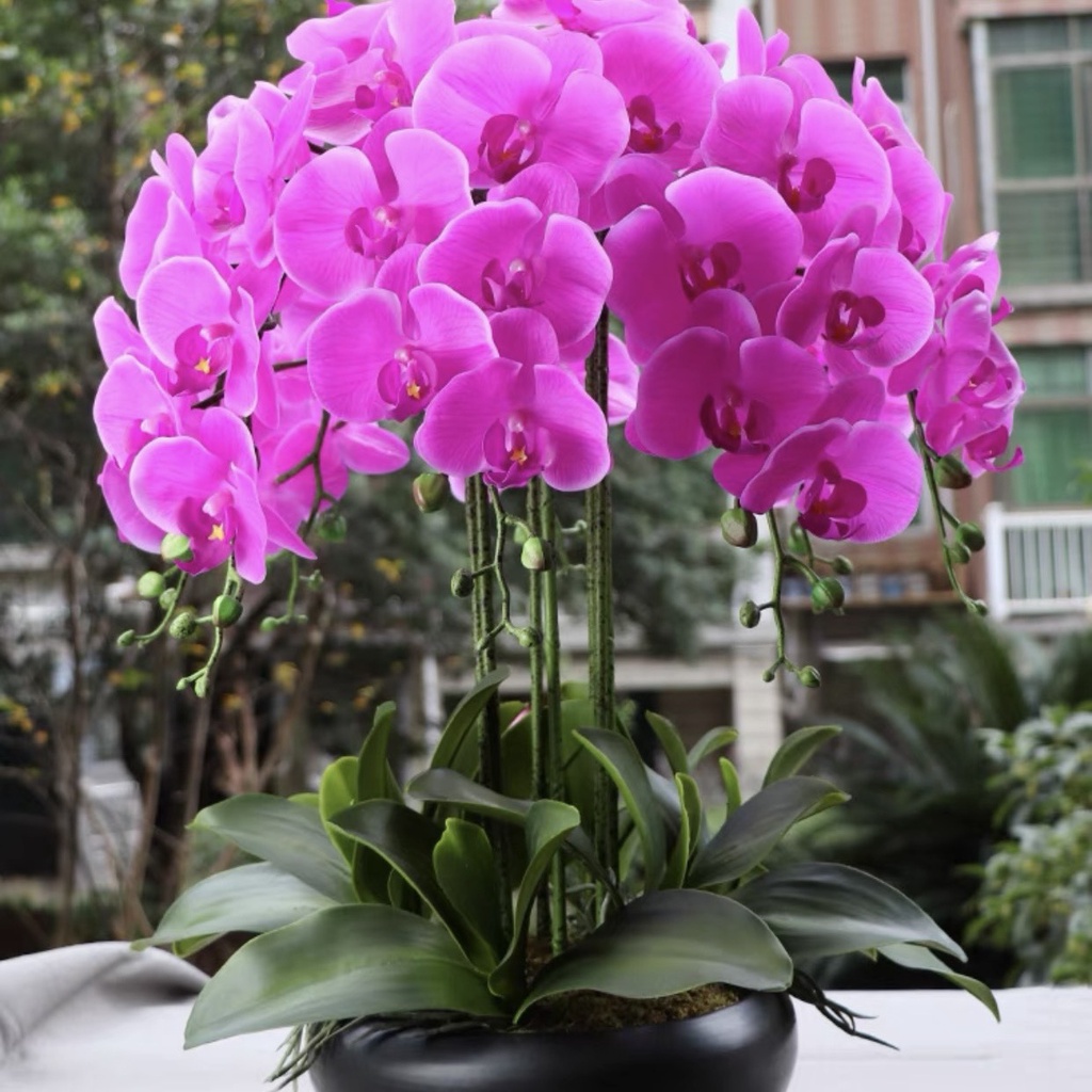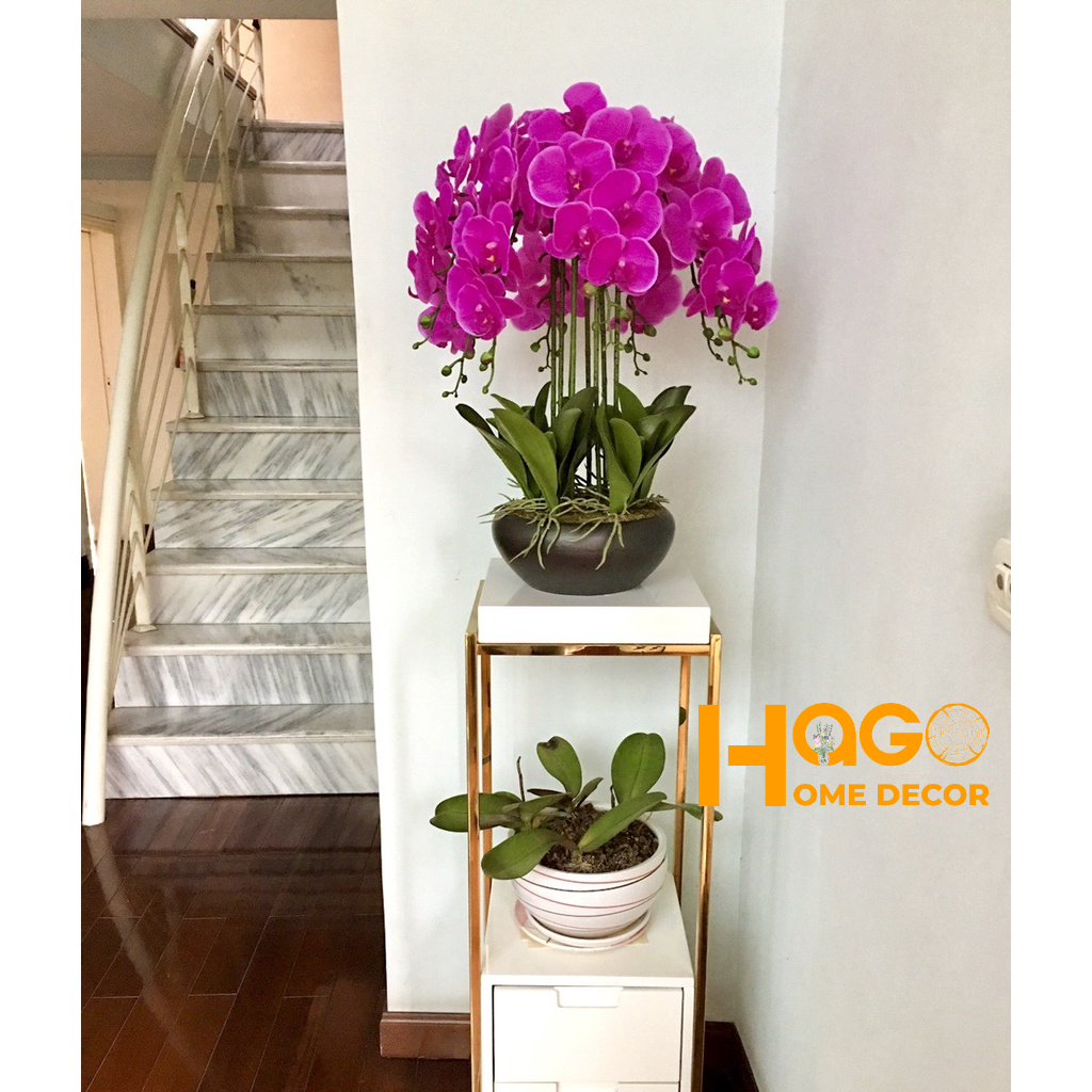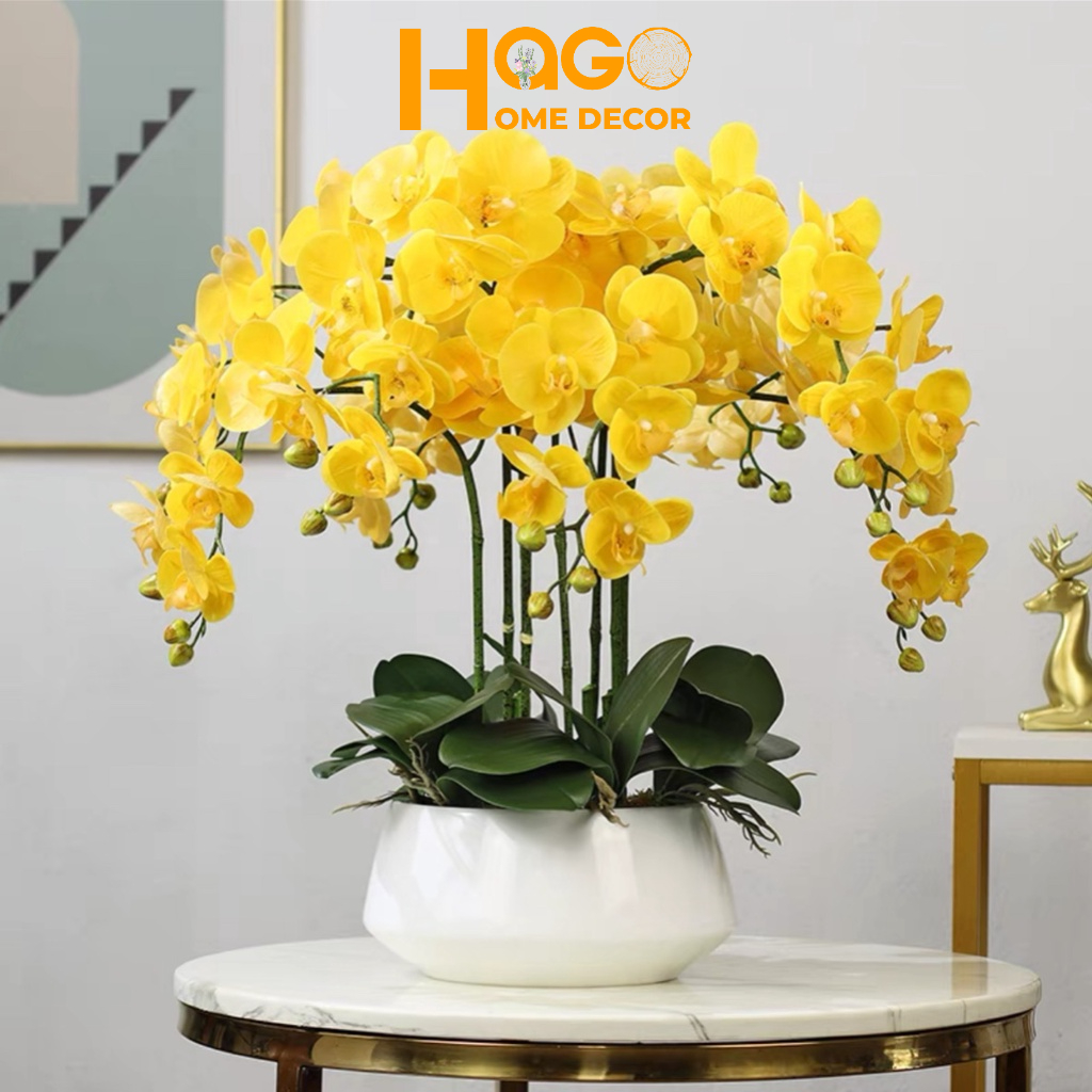 Chậu Lan Hồ Điệp Giả 5 đến 10 Nhánh Cắm Sẵn Cao 60cm Trang Trí Nhà Cửa,Công Ty, Nhà Hàng, Khách Sạn Sang Trọng