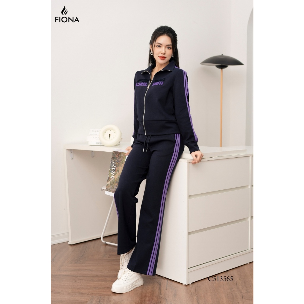 Set bộ FIONA SET Áo thể thao dáng bo gấu kê dây trang trí Quần thể thao dáng suông kê dây trang trí sườn SETC513565