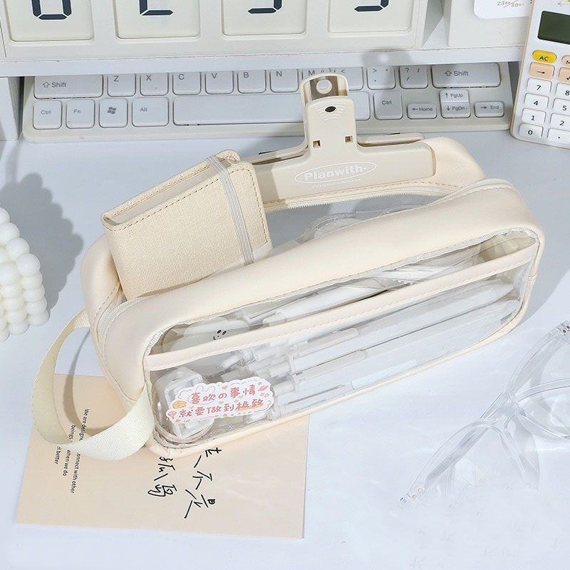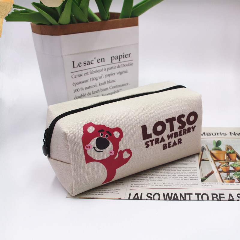 Hộp Đựng Bút trong suốt nhiều ngăn, bóp viết gấu dâu cute, túi đựng bút nam nữ to bằng vải caro