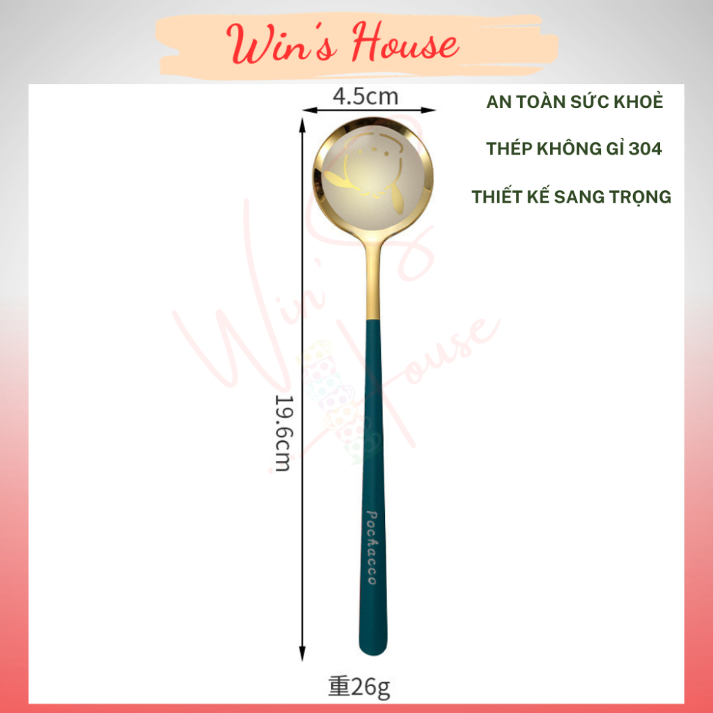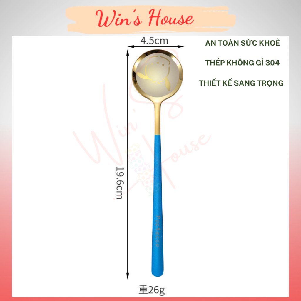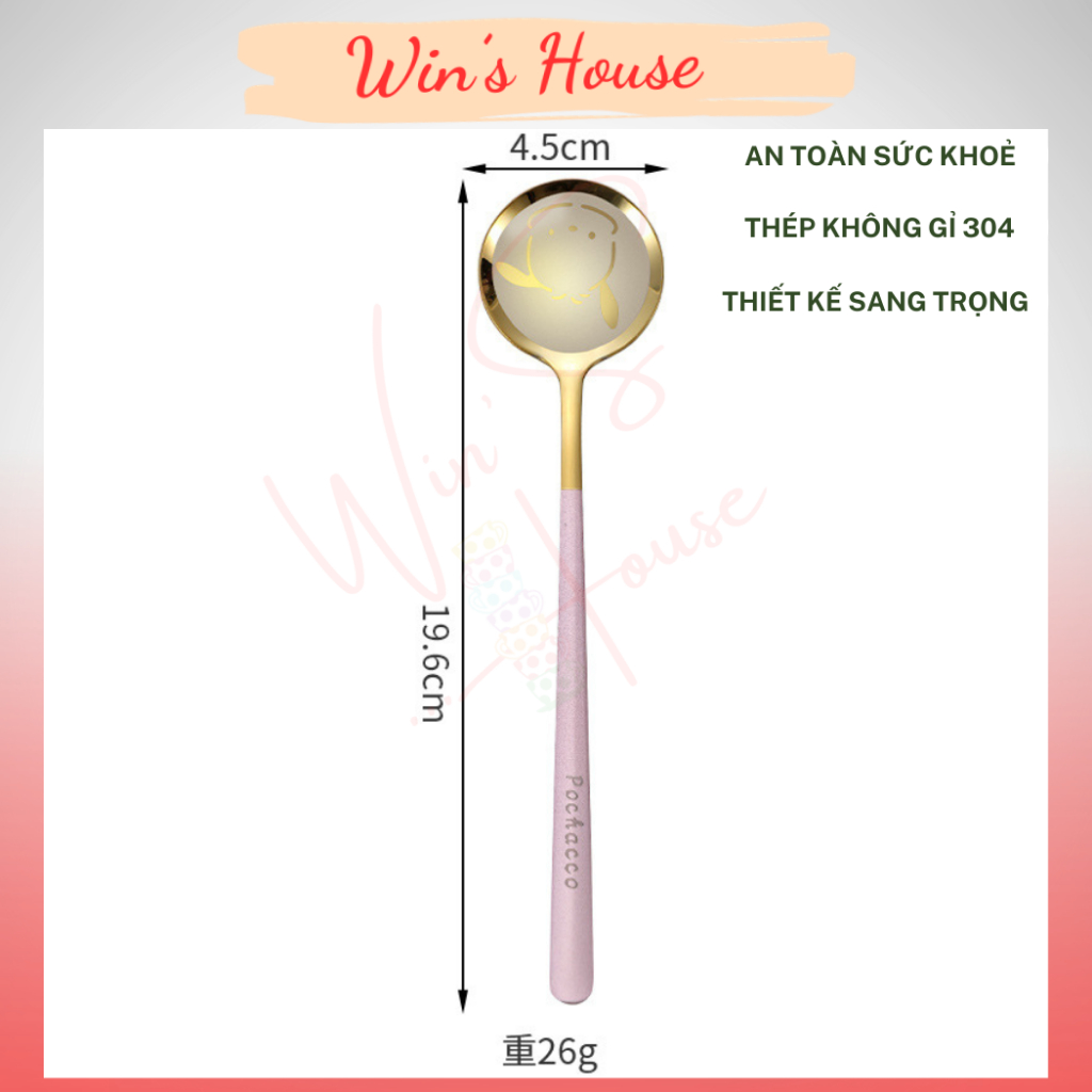 Thìa inox - Muỗng cà phê chất liệu thép không gỉ, thìa dài uống trà Sanrio Pochacco tay cầm dài nhiều màu