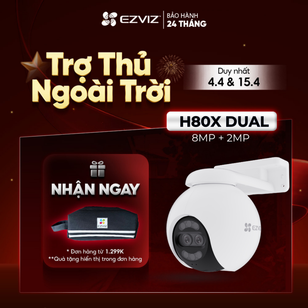 Camera WIFI EZVIZ H80X DUAL 4K Ống Kính kép, Phòng thủ chủ động với còi báo động & đèn chớp