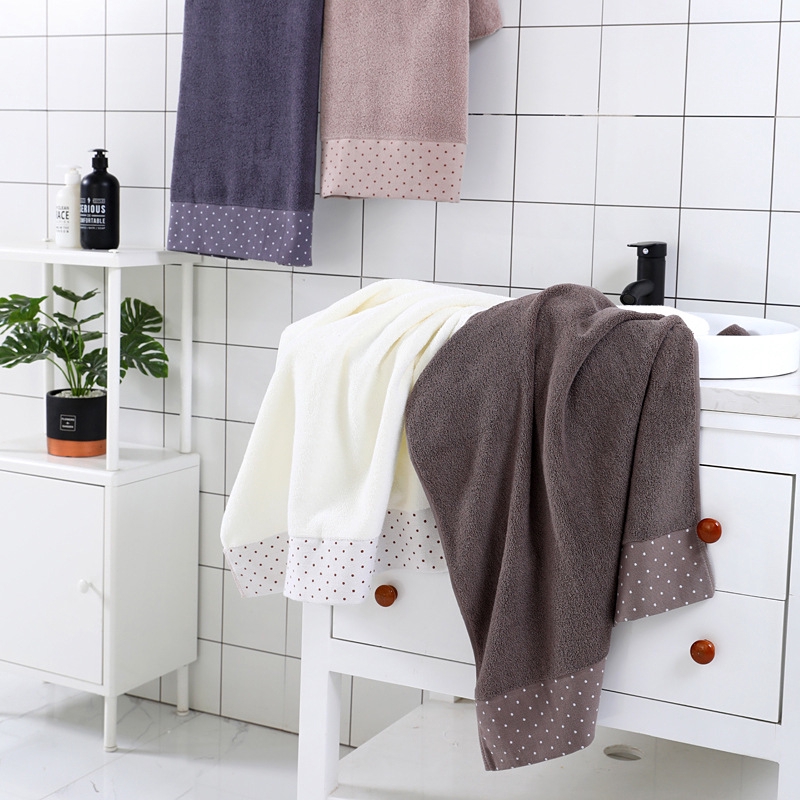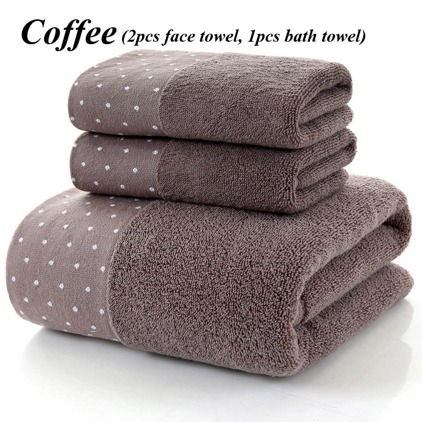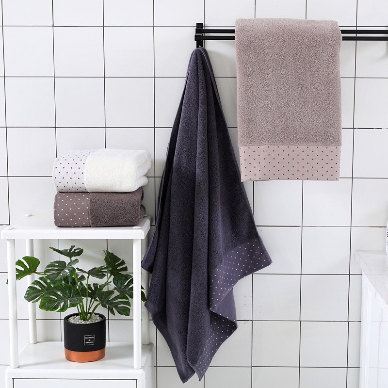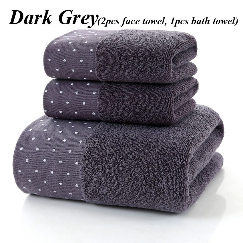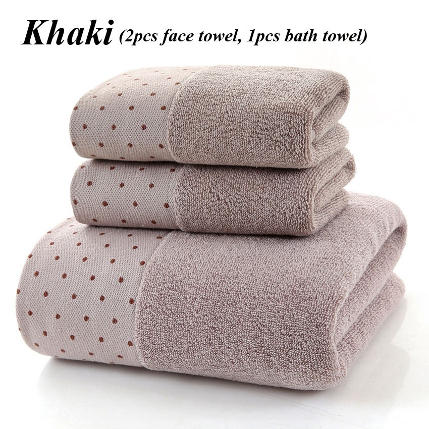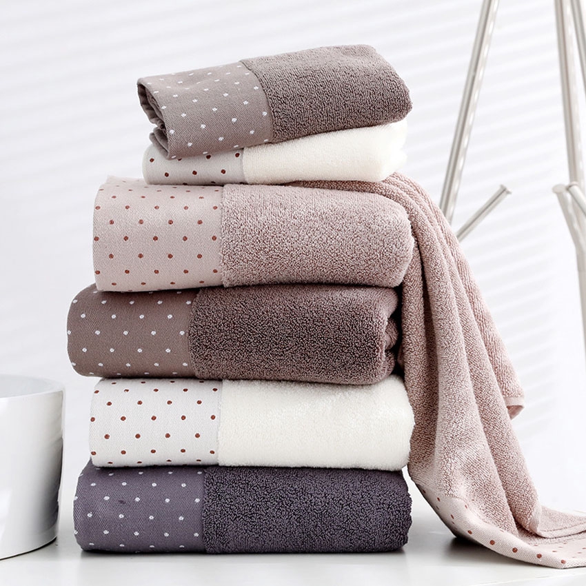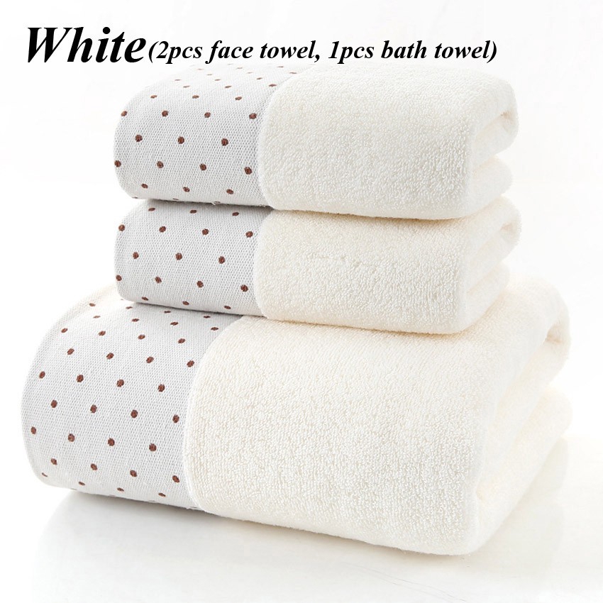 Set 3 Khăn Tắm Cotton Dày Họa Tiết Chấm Bi Dành Cho Người Lớn Trẻ Em