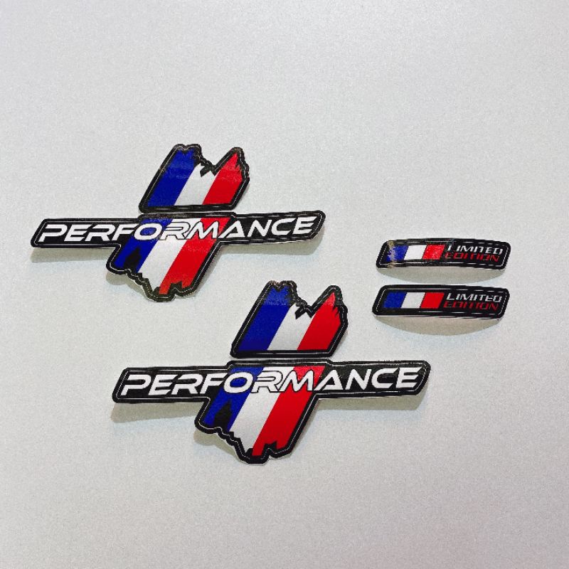 Tem decal chữ performance kèm hình cờ cao cấp dán xe máy, ô tô, mũ bảo hiểm chống thấm nước, chống bay màu
