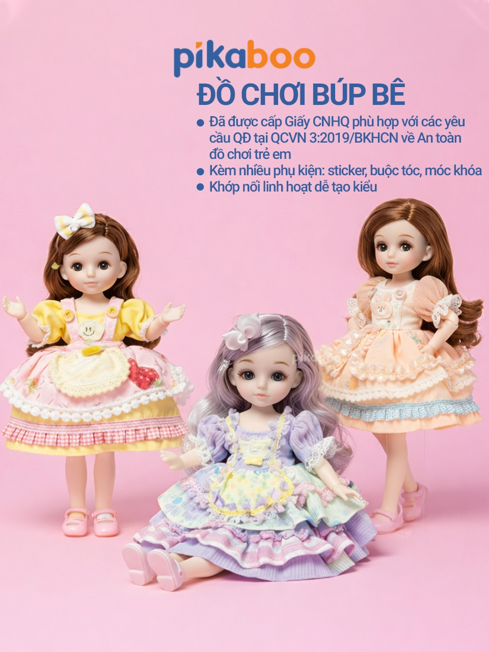 Đồ chơi búp bê cho bé gái Pikaboo, gồm nhiều phân loại bé lựa chọn, chất liệu an toàn