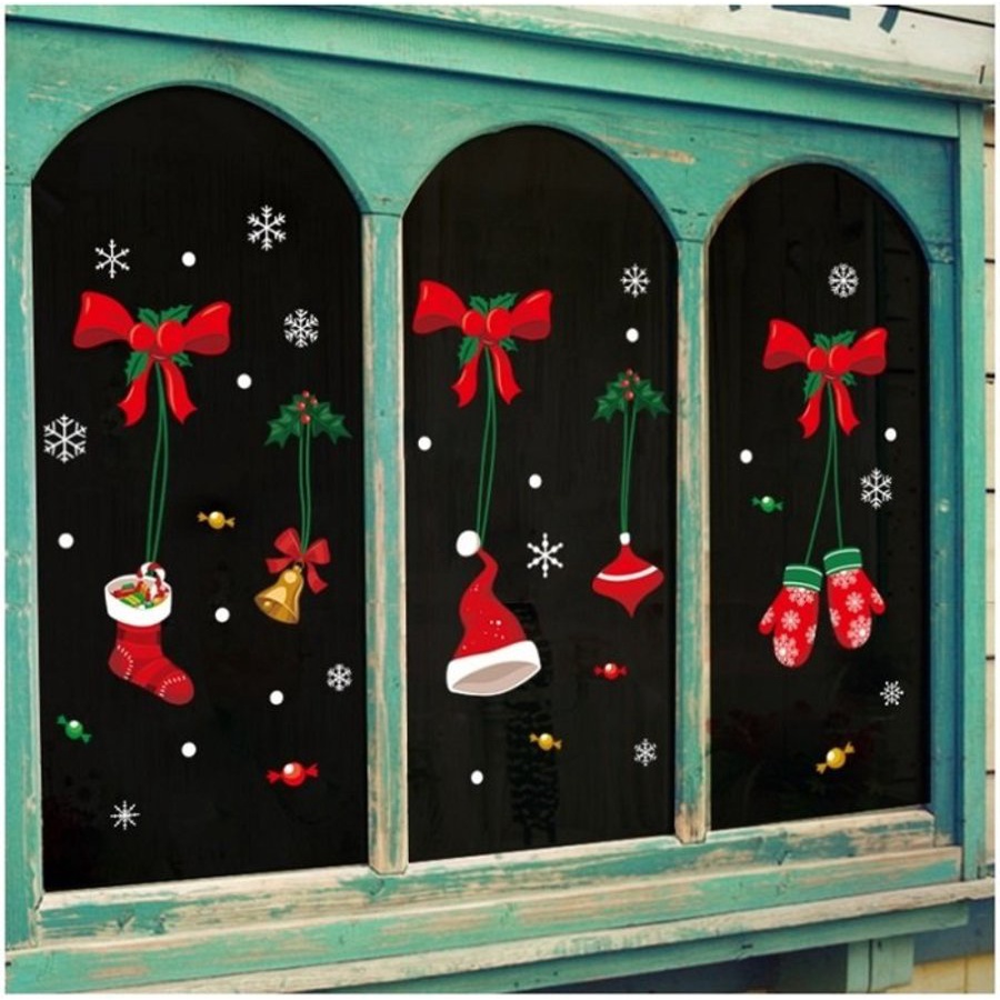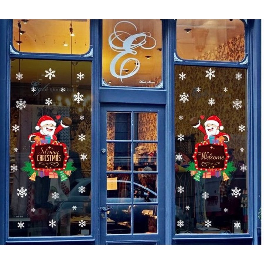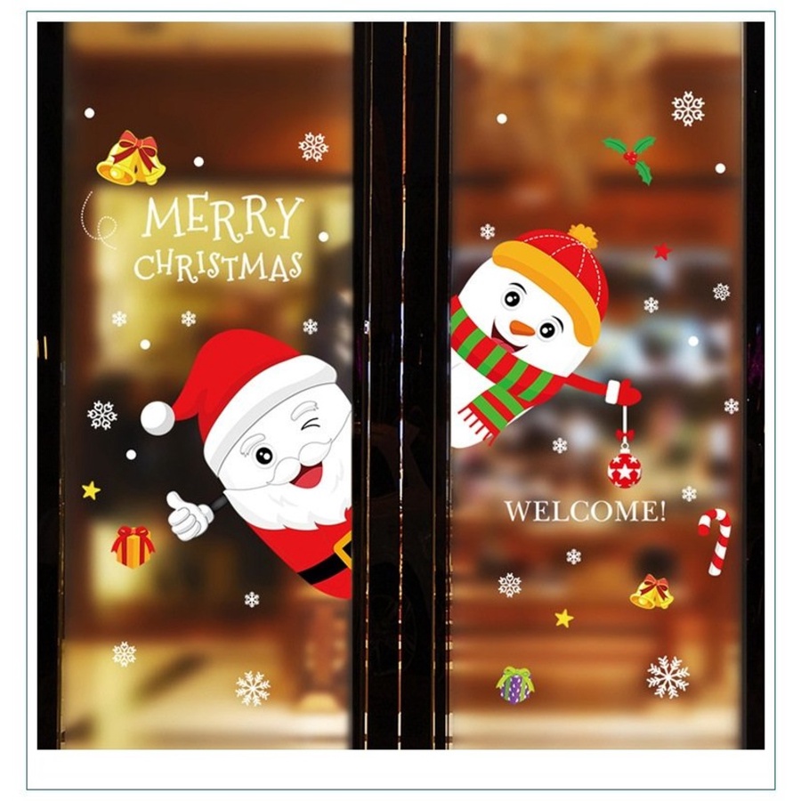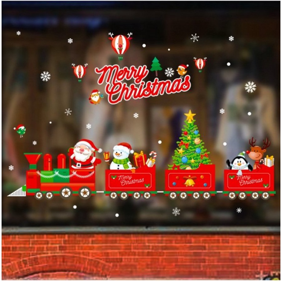 Decal 2 mặt trang trí noel trên cửa kính - Decal giáng sinh giá rẻ có keo sẵn dễ dán màu sắc nét