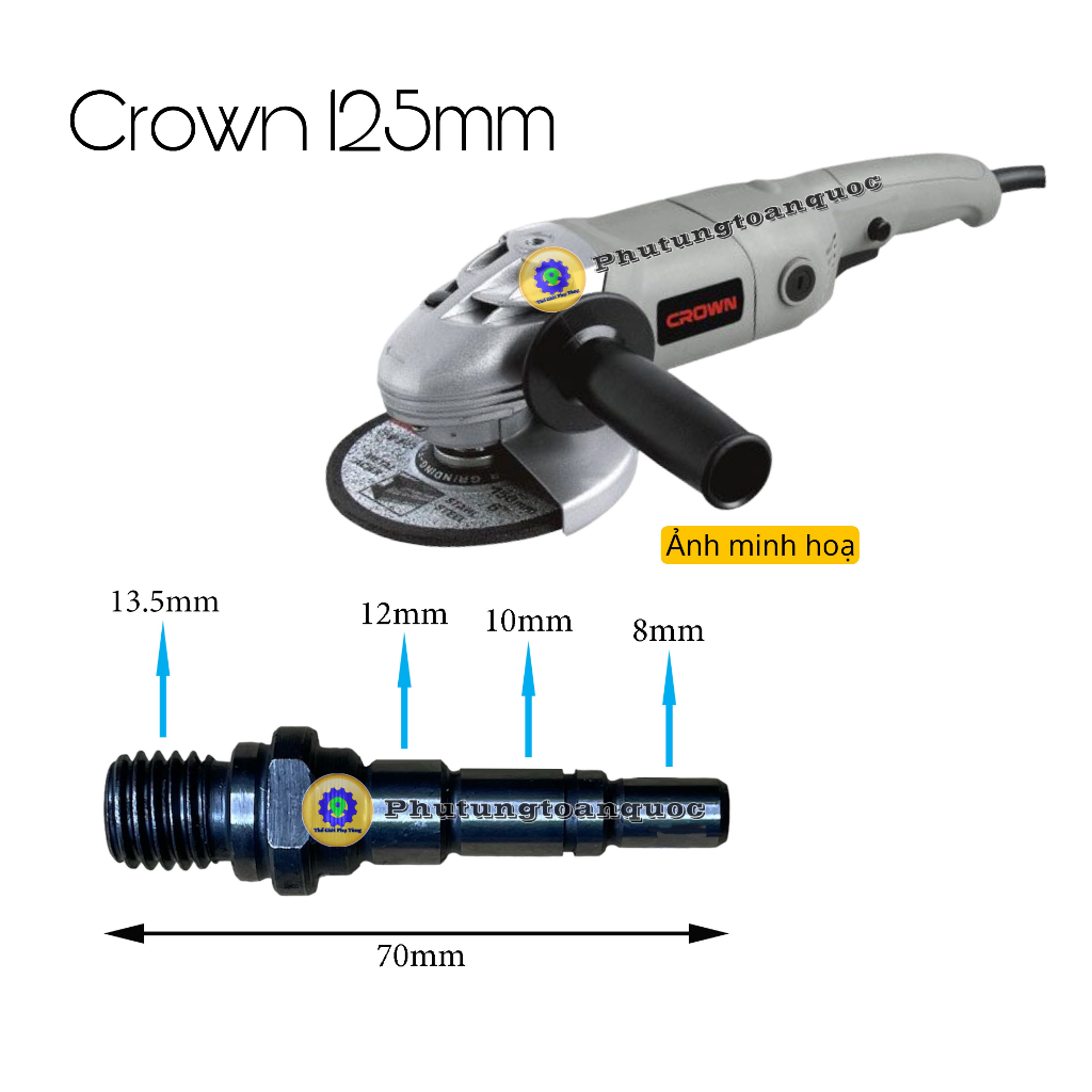 Trục/Cốt Máy Mài Crown Lưỡi 125mm Các Dòng Model CT3109, CT13217, CT13290 Ren Tán Kẹp Lưỡi 12mm