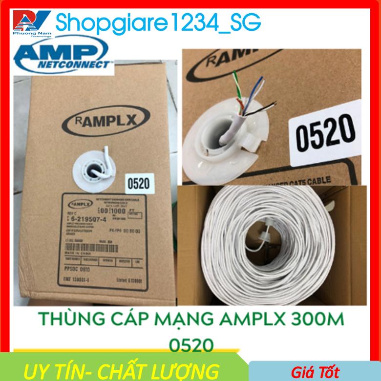 Thùng cable cáp mạng AMP CAT 5E UTP 305m 0520, Dây Xám Trắng- Full Box