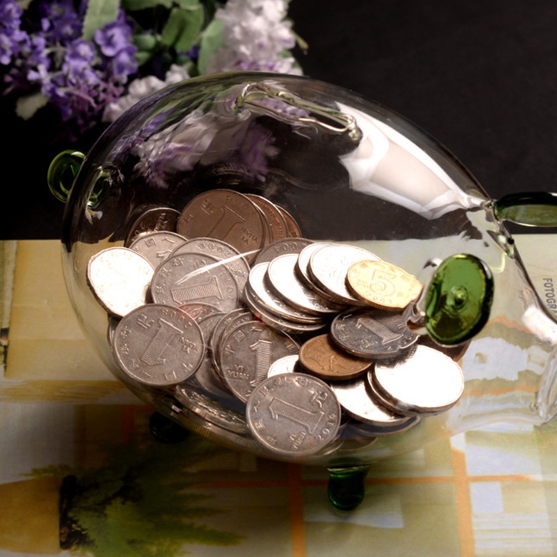 Ống Heo Tiết Kiệm Tiền Bằng Thủy Tinh Trong Suốt Dễ Thương