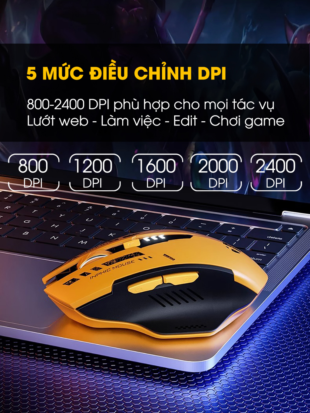 Chuột không dây bluetooth pin sạc SIDOTECH A9 gaming 6 nút bấm hiển thị pin máy tính laptop tablet kết nối Wireless 2.4G