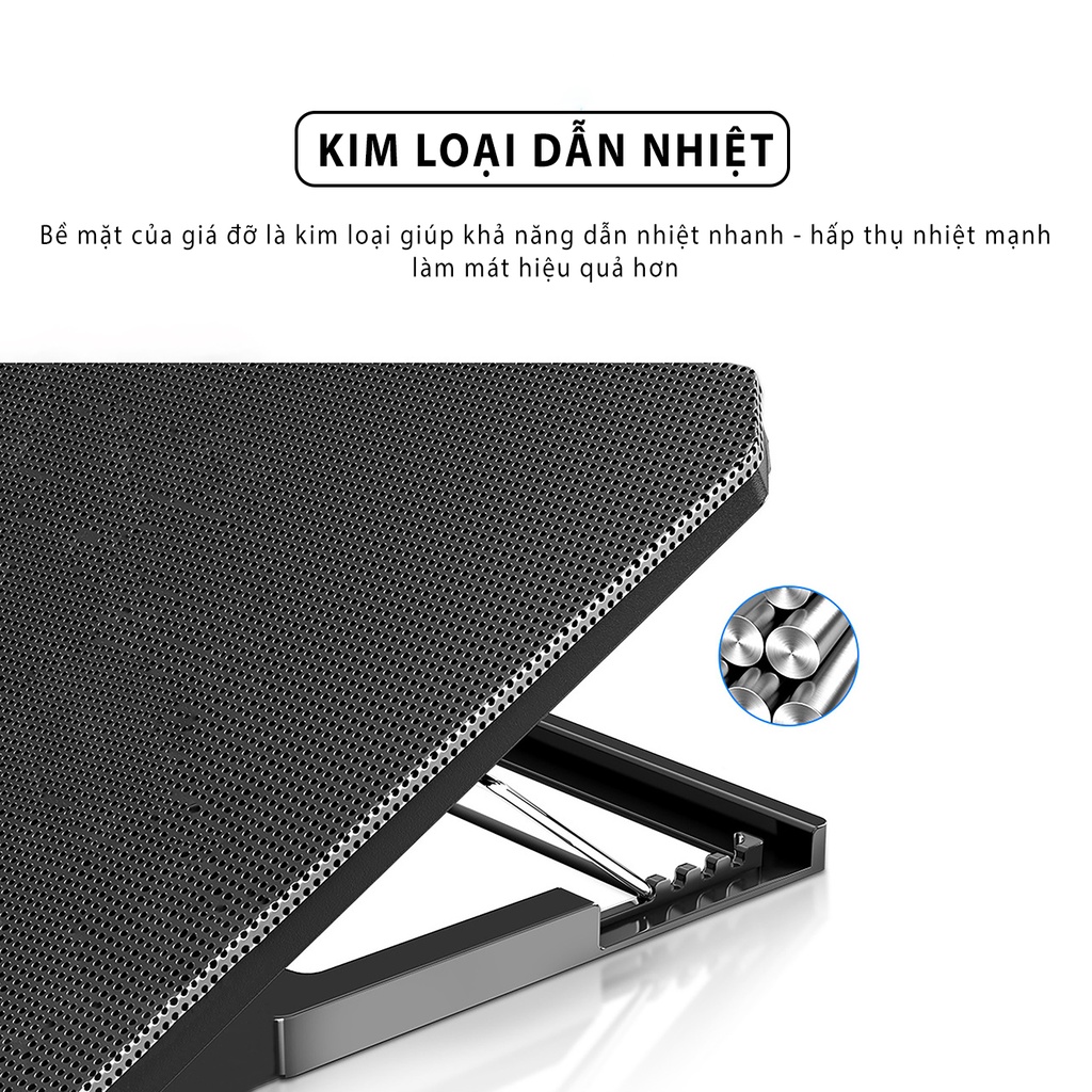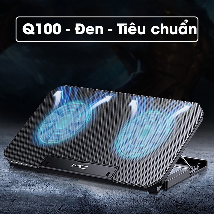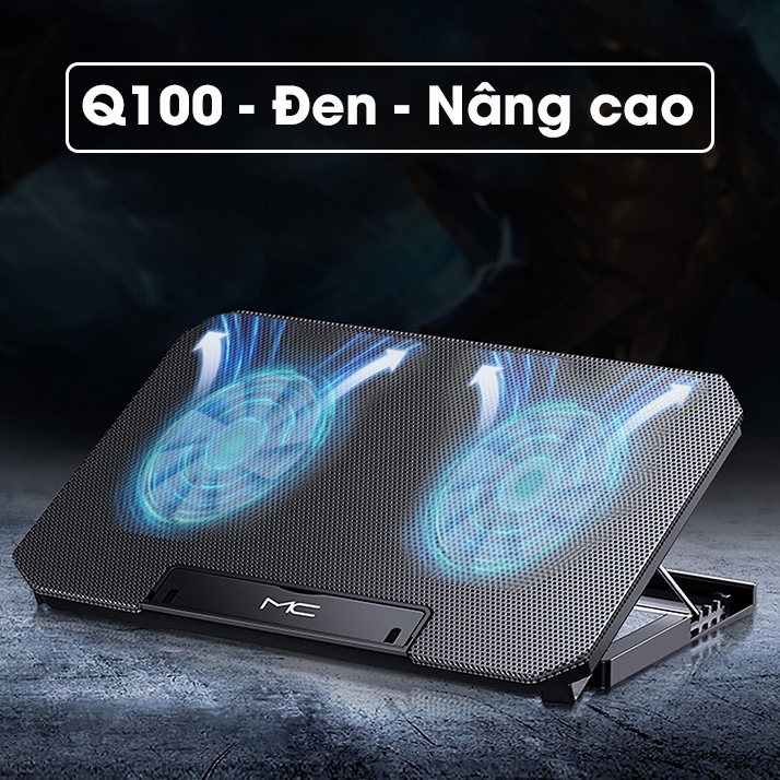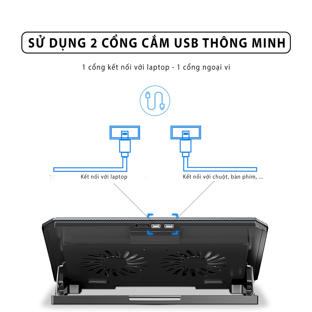 Đế tản nhiệt laptop SIDOTECH Q100 với 2 quạt lớn làm mát nhanh chống ồn led gaming 4 mức điều chỉnh độ cao tốc độ gió