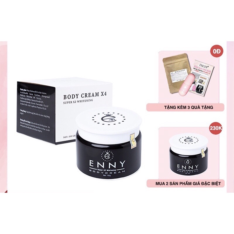 Kem body x4 Enny phiên bản mới tặng kèm bột tắm trắng thảo mộc
