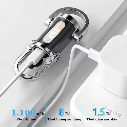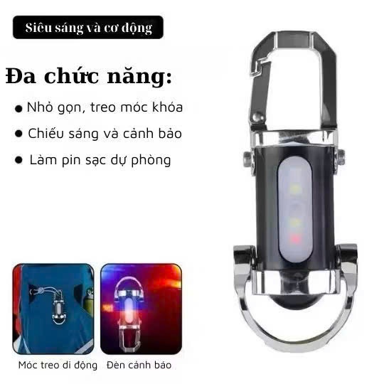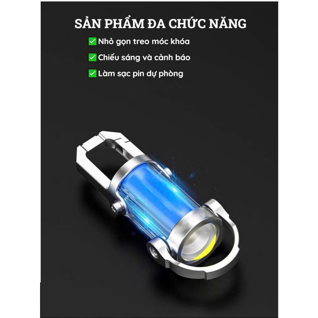 Đèn pin LED mini kèm Móc khóa đa năng công nghệ COB siêu sáng kết hợp đèn cảnh báo, tiện dụng.