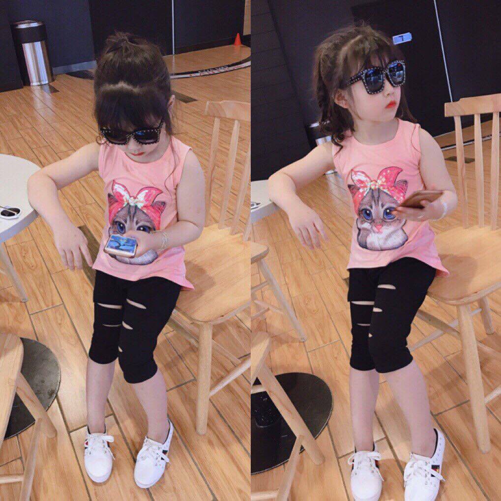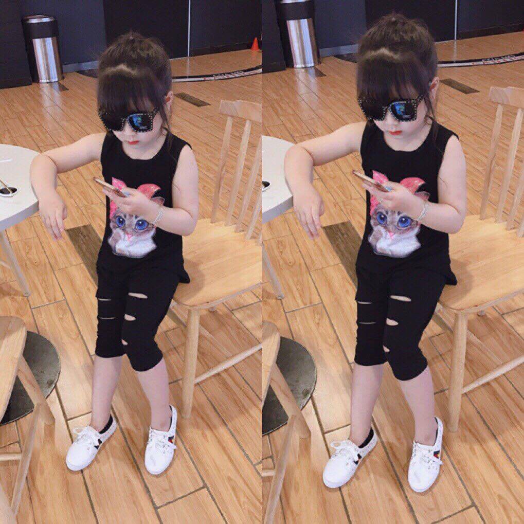 Bộ thun tay đùi hình mèo cho bé gái- đồ bộ bé gái size 1-2