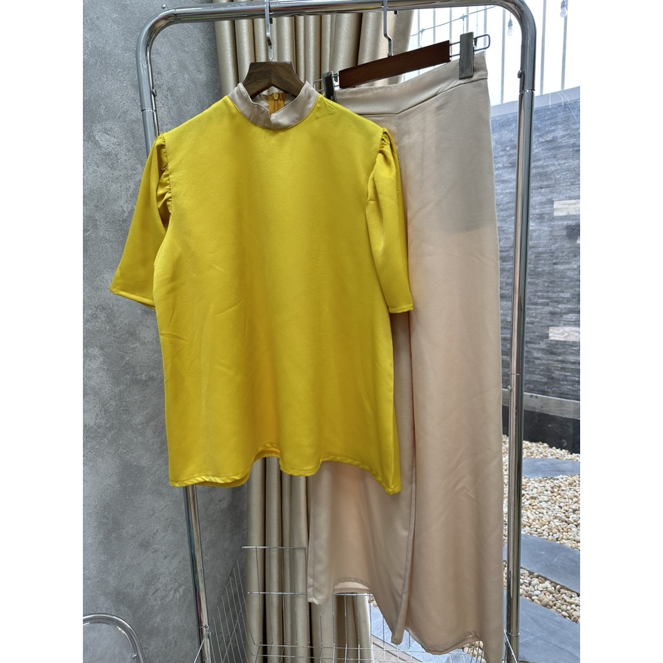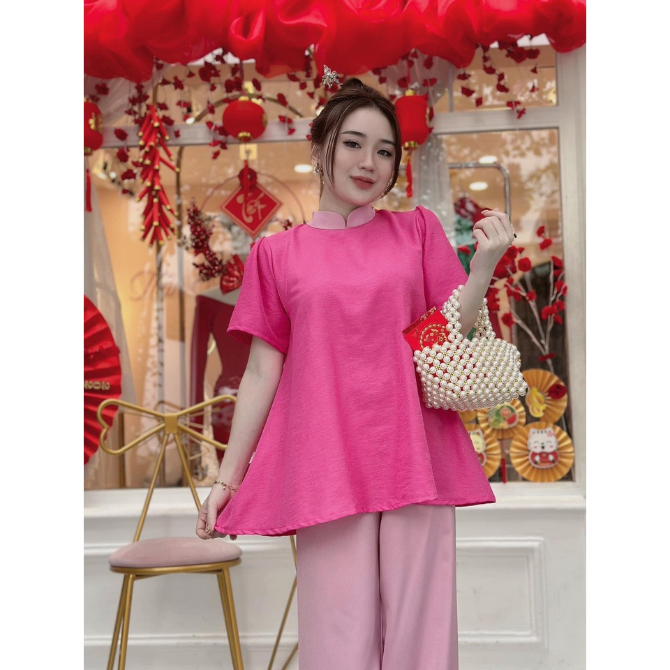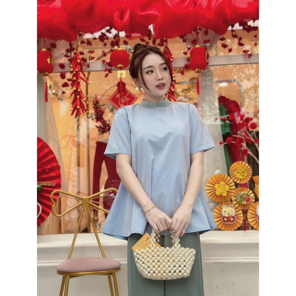 Bộ đồ bà ba cách tân đồ lam pháp phục nữ truyền thống cổ cao đi lễ chùa áo dài trơn phi bóng, áo dài lụa thêu hoa