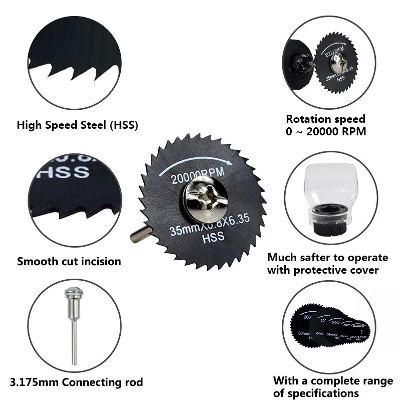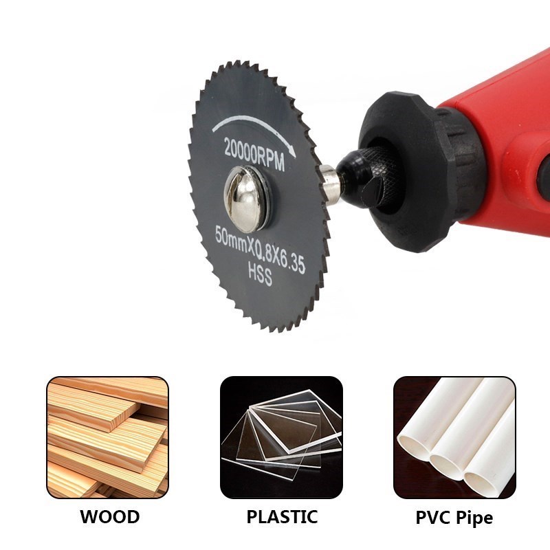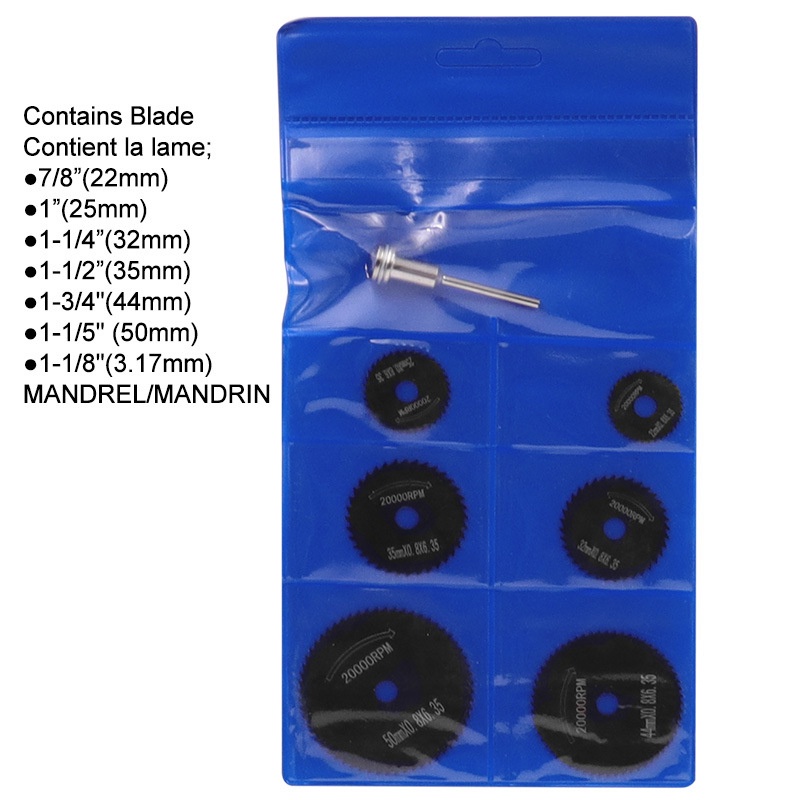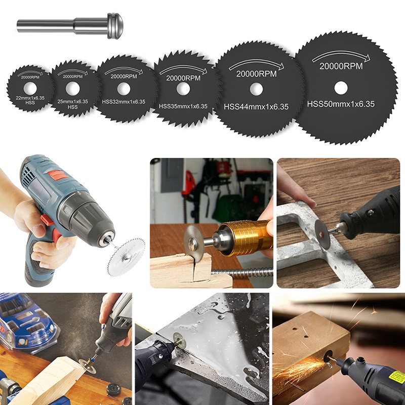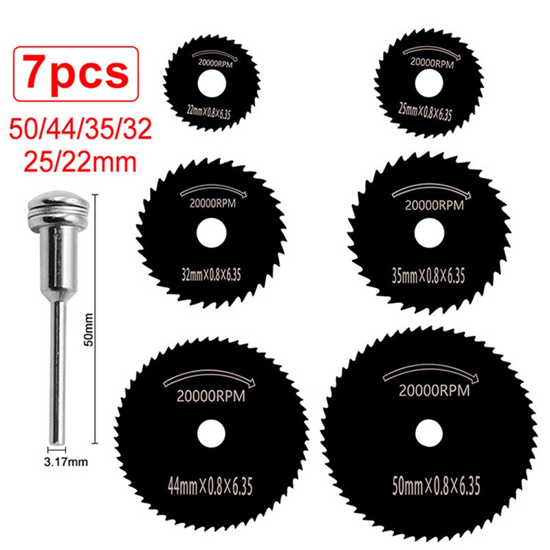 Kiprun 7 Chiếc Mini HSS Lưỡi Cưa Tròn Dụng Cụ Xoay Cho Máy Cắt Kim Loại Dremel Dụng Cụ Điện Đĩa Cắt Gỗ Máy Khoan Mandrel Cutoff 22-50mm