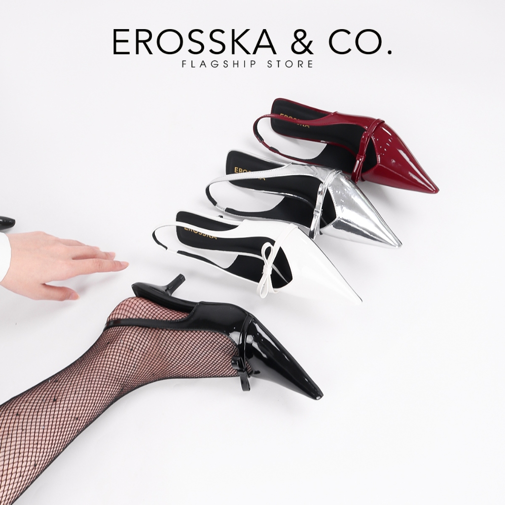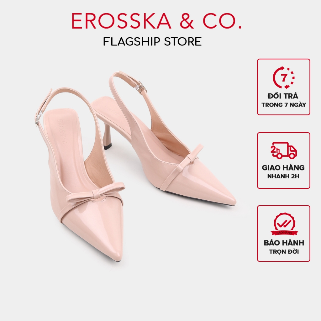 [EROSSKA] - Giày cao gót nữ mũi nhọn phối nơ kiểu dáng đơn giản thanh lịch màu hồng cao 8cm - EH044