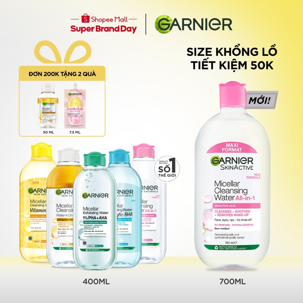 [CÓ SIZE MỚI] Nước Tẩy Trang làm sạch sâu dịu nhẹ cho mọi loại da - Garnier Micellar Cleansing Water 400ml & 700ml