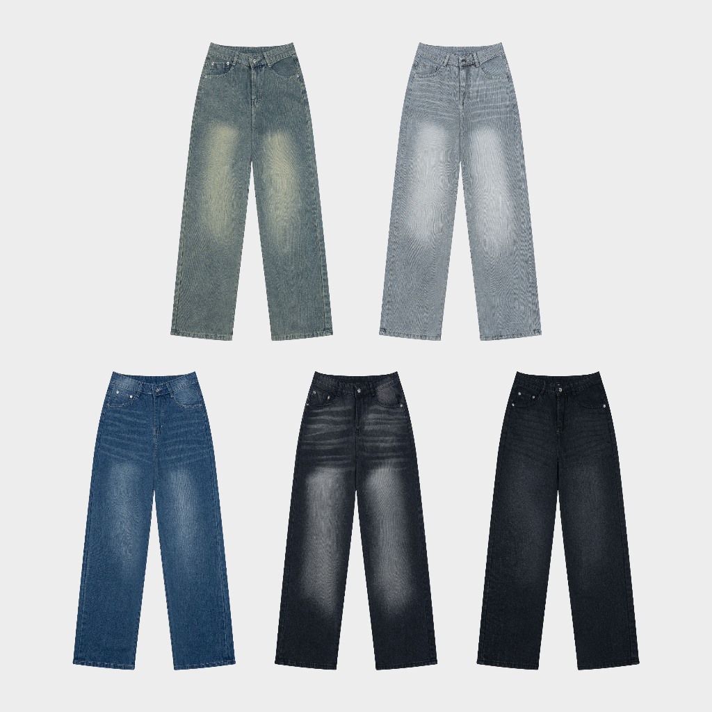 Quần Jean Outerity Wash Cạp Cao Form Unisex